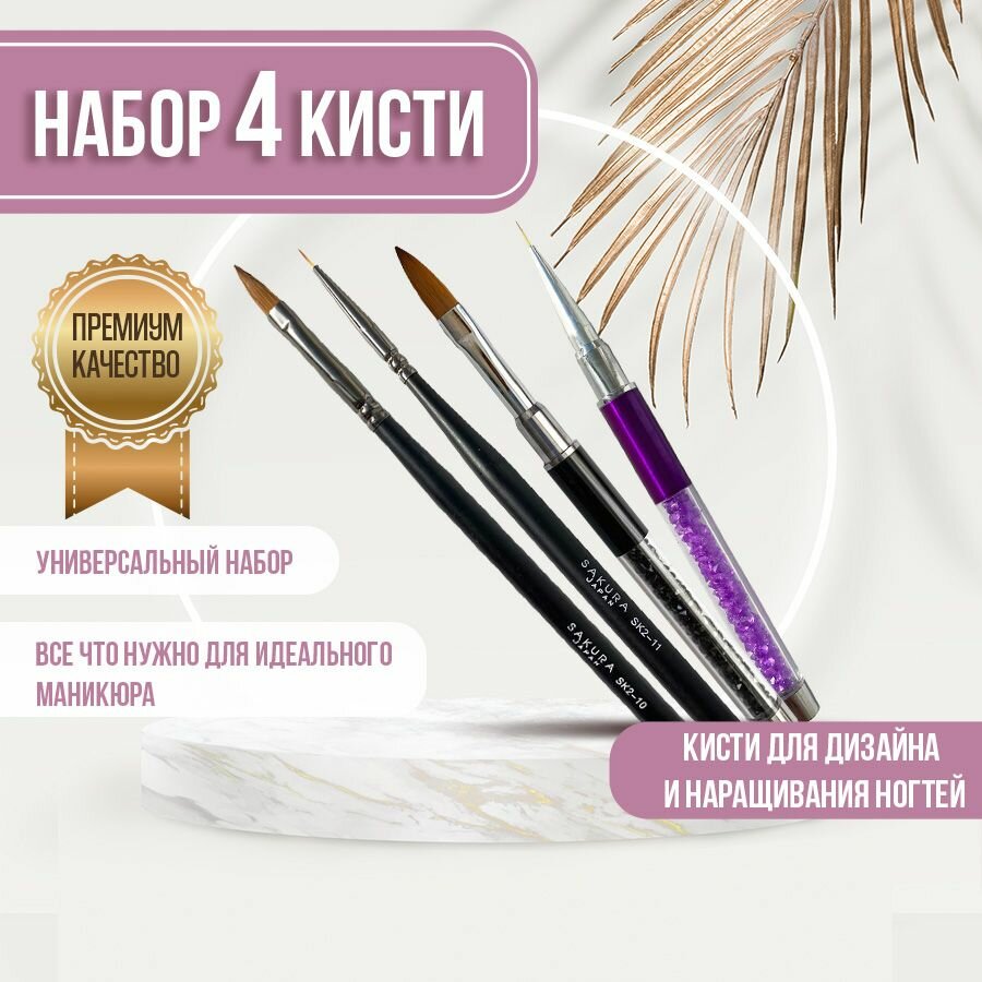 Купить Набор кистей Sakura Gel для маникюра и дизайна ногтей, 4 штуки