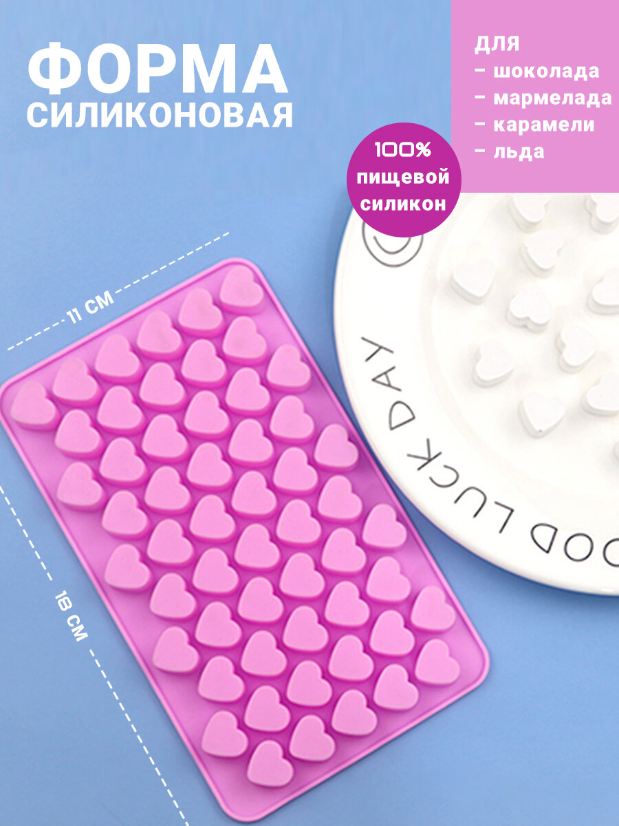 Форма силиконовая для шоколада, мармелада, льда сердечки Kokette 10784, розовый, размер: 11х18 см интересное: