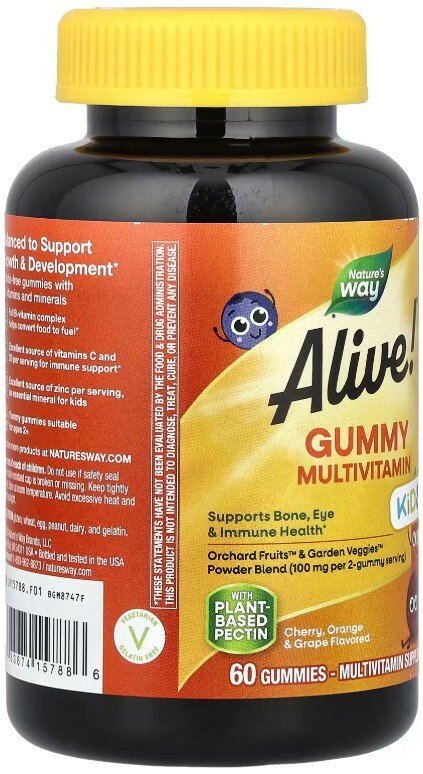 Nature's Way Alive! Kids (мультивитамины для детей) вишня, апельсин и виноград 60 мармеладок (Nature's Way)
