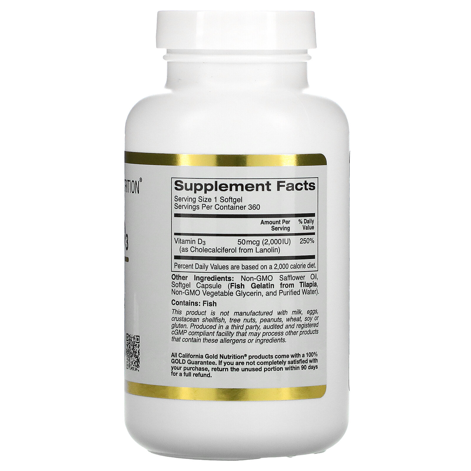 California Gold Nutrition, Витамин D3 (Д3), 50 mcg 2000 IU, 90 капсул