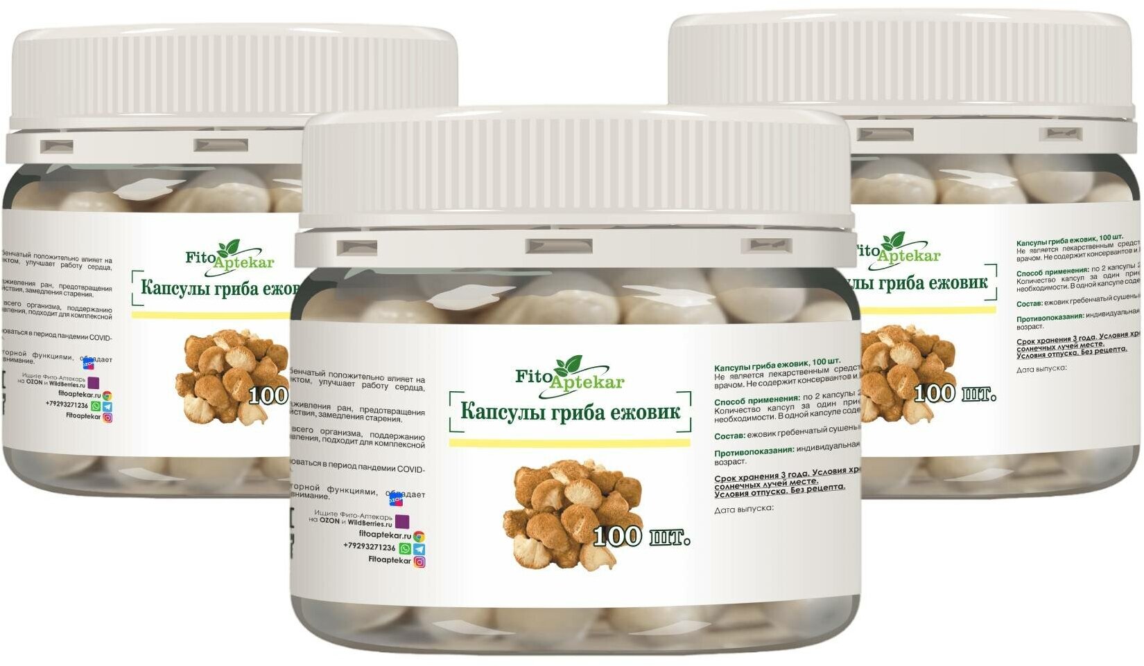 Ежовик гриб гребенчатый в капсулах Фито-Аптекарь, натуральный пищевой продукт 100 шт*3 упаковки