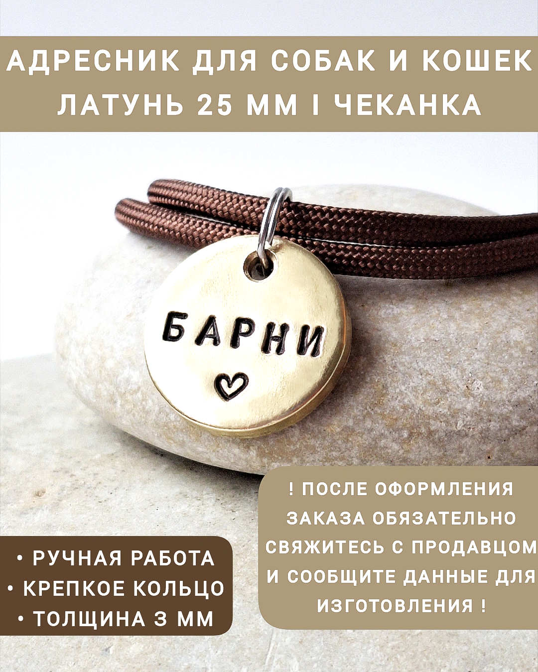 Адресник жетон медальон для собак и кошек Латунь 25 мм интересное: