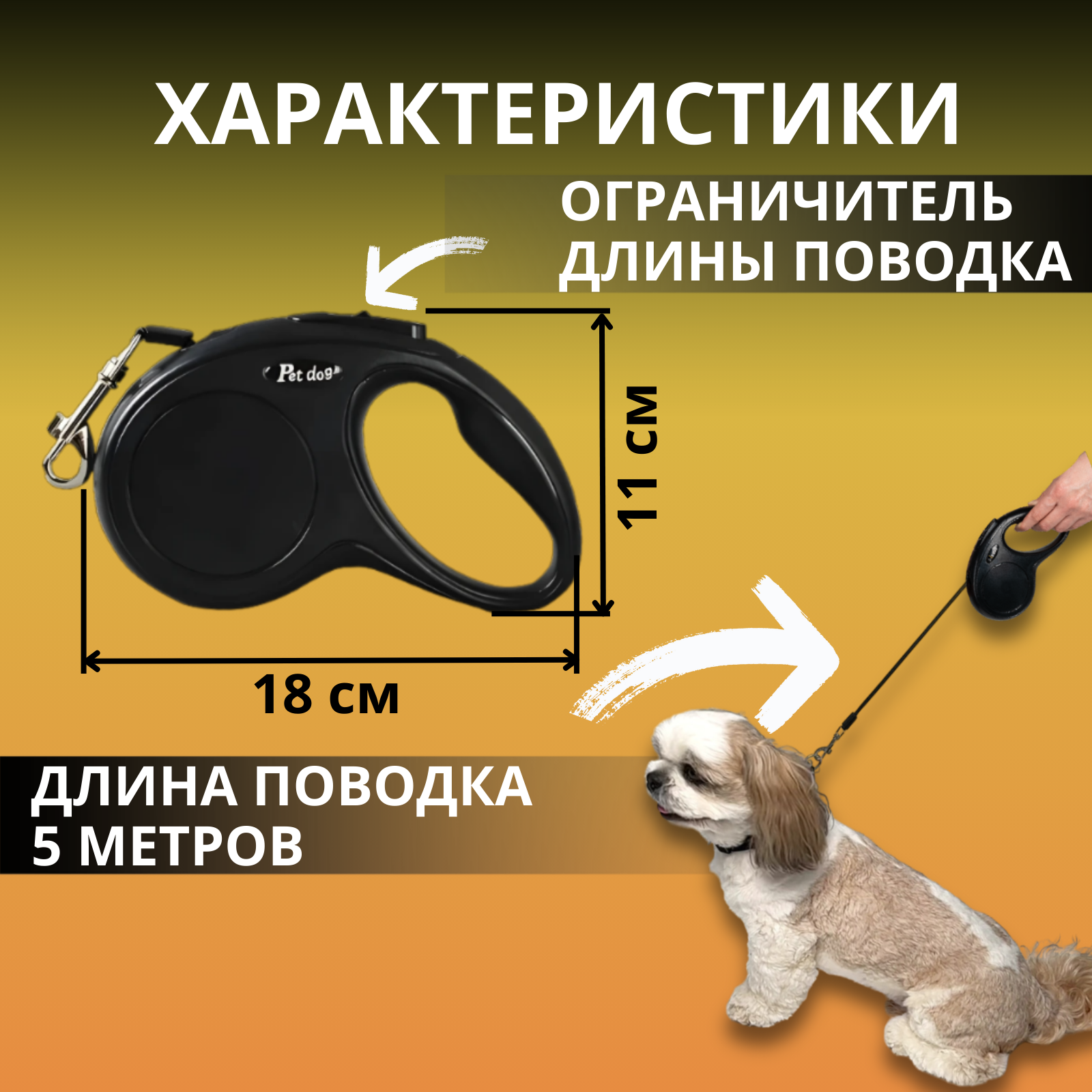 Поводок-рулетка "Pet Dog" для собак средних, крупных пород, черный, 5 м, корд