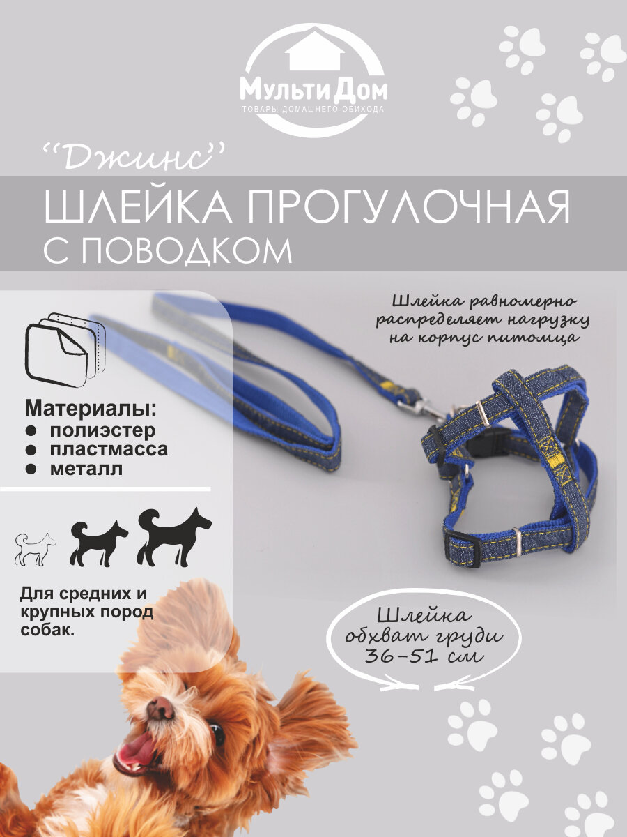 Шлейка "Джинс", прогулочная, с поводком, для крупных и средних собак, размер M