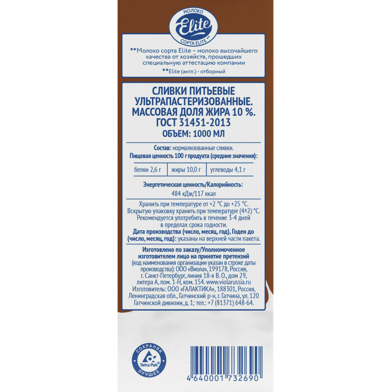 Сливки питьевые ультрапастеризованные. Массовая доля жира 10 %, 1000 мл интересное: