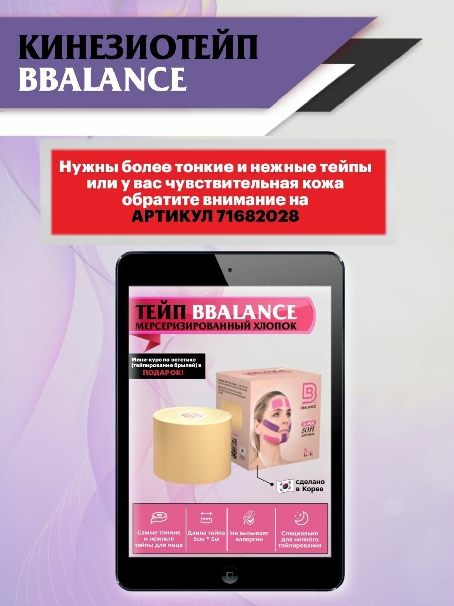 | Комплектация | Кинезио тейп для лица 5 см х 5 м с подробной инструкцией и мини-курсом внутри упаковки |