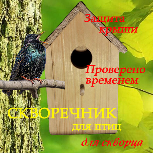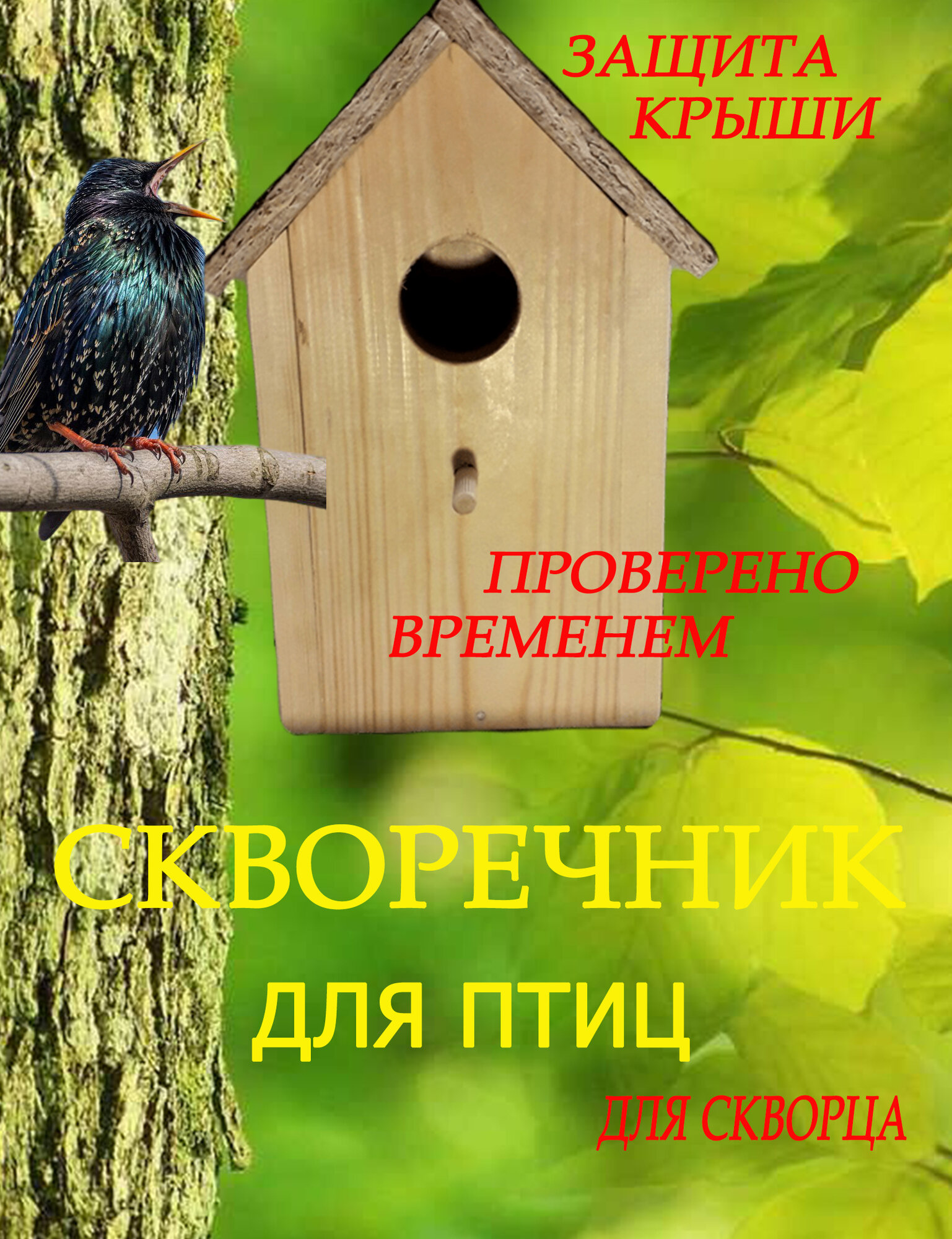 Скворечник "Домик для птиц" из дерева, крыша с защитой, бесцветный, 1 упаковка, Дедборис интересное: