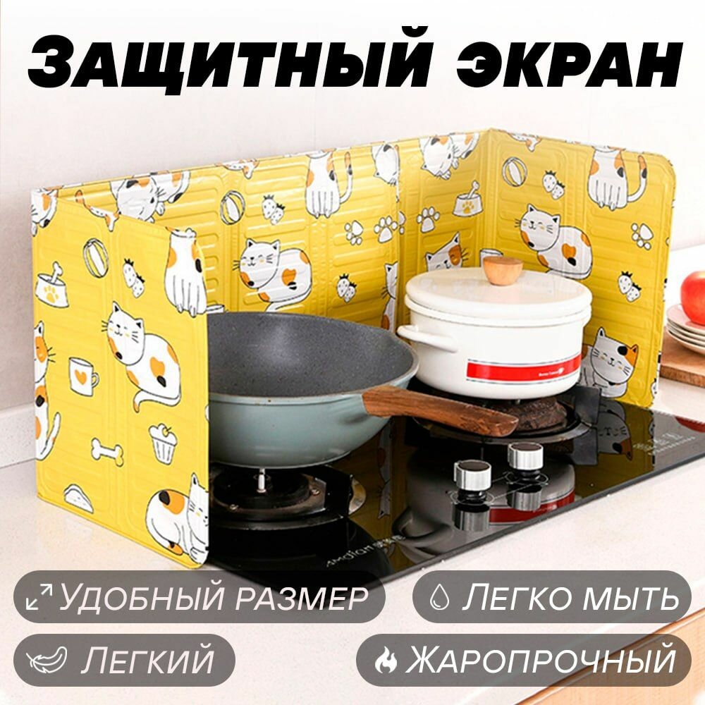 Купить Защитный экран для кухни от брызг масла и жира / Фольга защитная для плиты при жарке / Желтый
