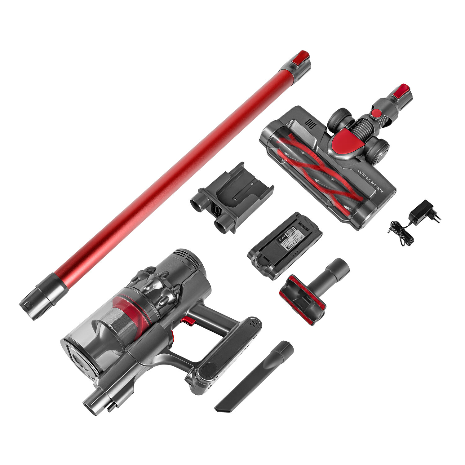 Купить Пылесос беспроводной вертикальный LEX LXVCS 7070, для сухой уборки, 2 скорости, подсветка зоны уборки, емкость аккумулятора, 2200 мАч, 3 насадки, цвет-неповторимый рубиновый.