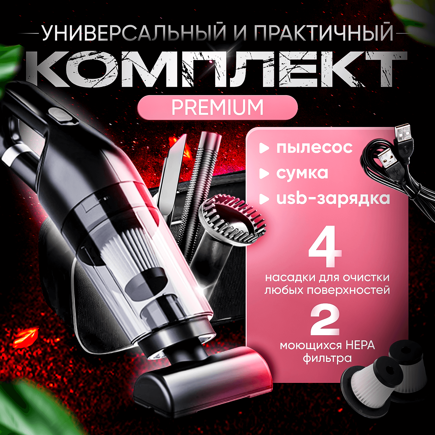 Автомобильный пылесос портативный, повышенной мощности, 4 насадки интересное: