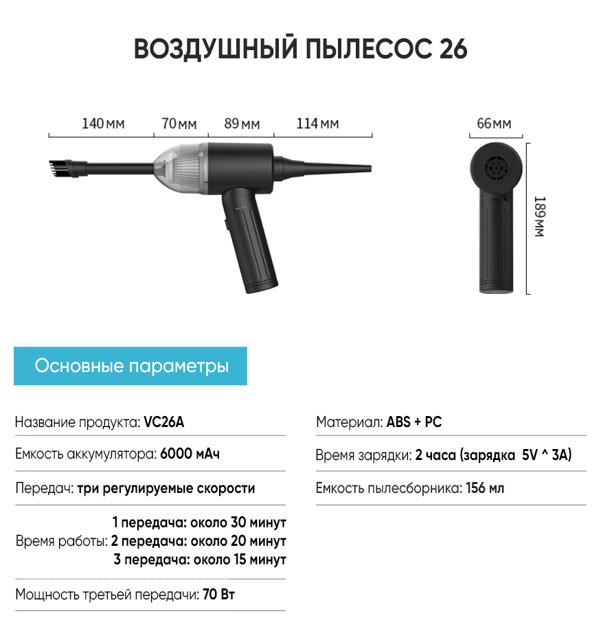 Мини пылесос с функцией воздуходувки аккумуляторный VC43 для компьютера, автомобиля, дома. интересное: