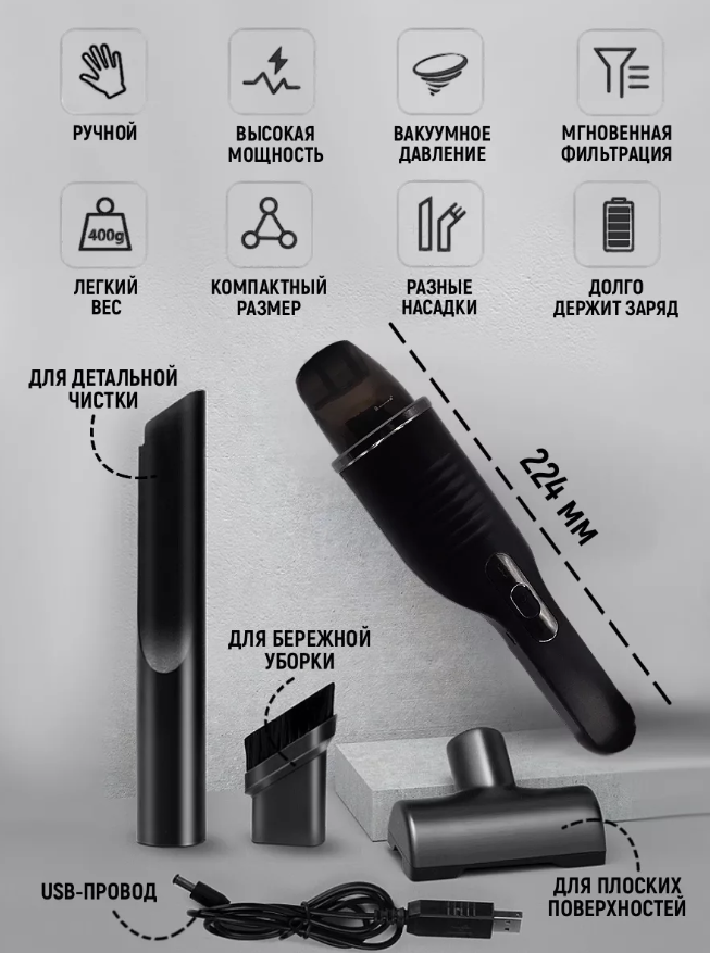 Автомобильный ручной пылесос с 3 насадками\Высокомощный беспроводной пылесос для автомобиля интересное: