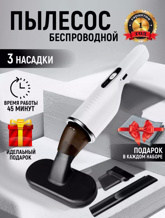 Купить Автомобильный ручной пылесос с 3 насадками\Высокомощный беспроводной пылесос для автомобиля