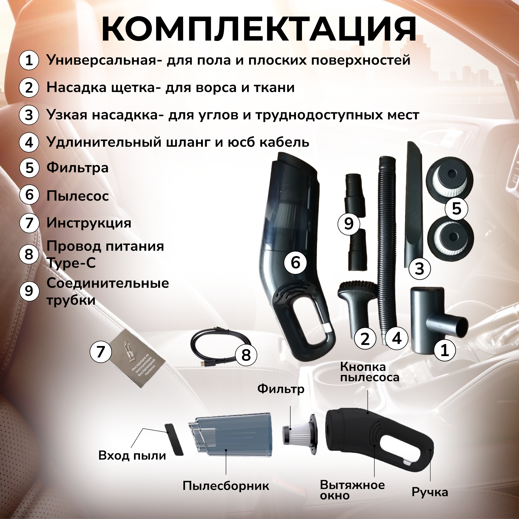 | Дополнительная информация | пылесос для авто, портативный, мощный, для сбора мусора, для мебели, пола, ковровых дорожек, для сбора шерсти животных, можно подключать через адаптер в прикуриватель |