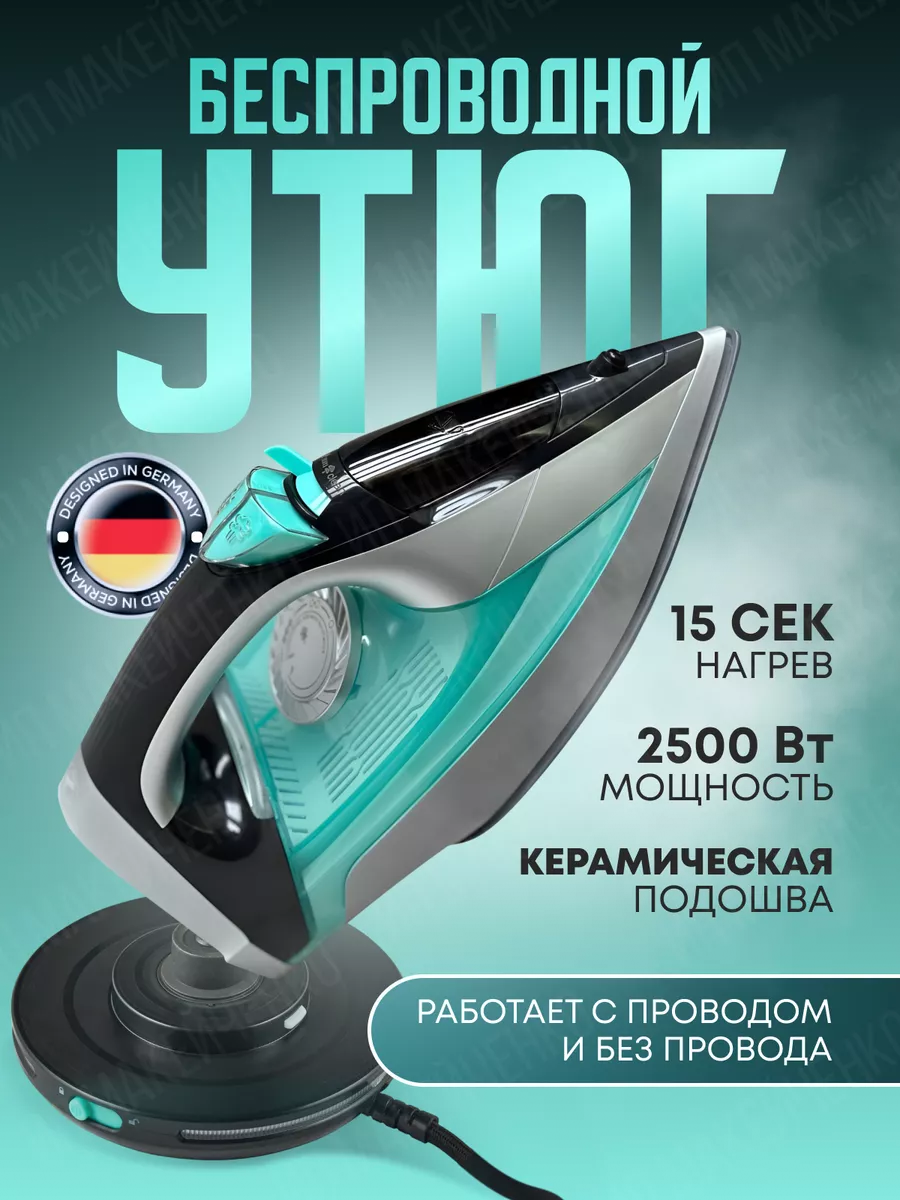 Утюг беспроводной, с функцией вертикальной глажки, паровой удар, домашний, антипригарное покрытие, система самоочистки,2500Вт интересное: