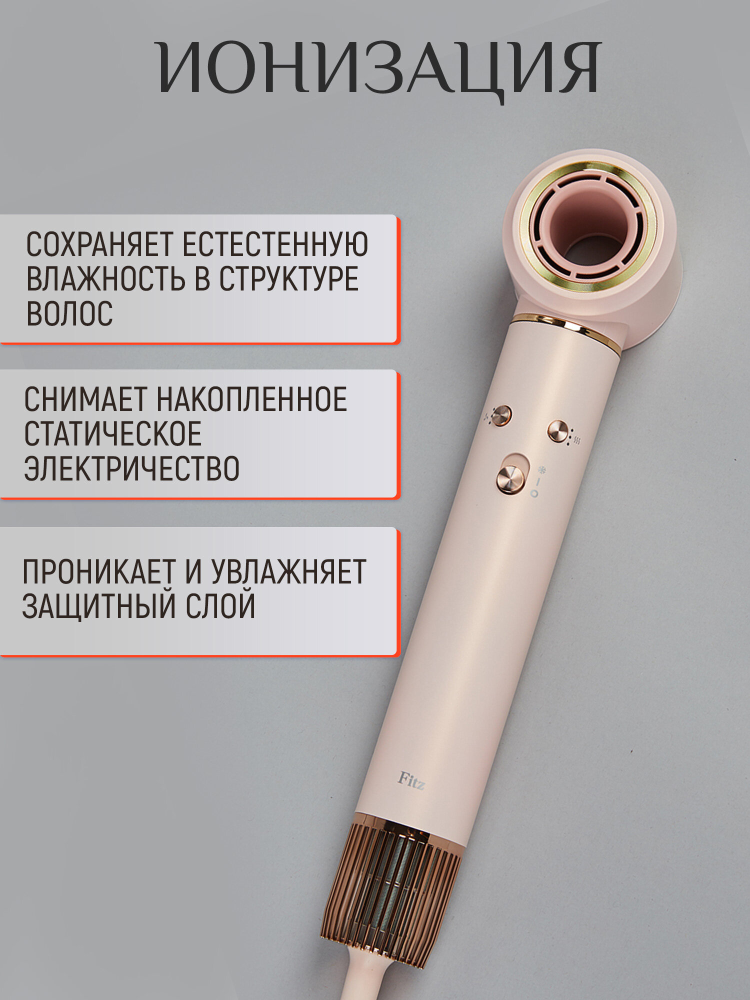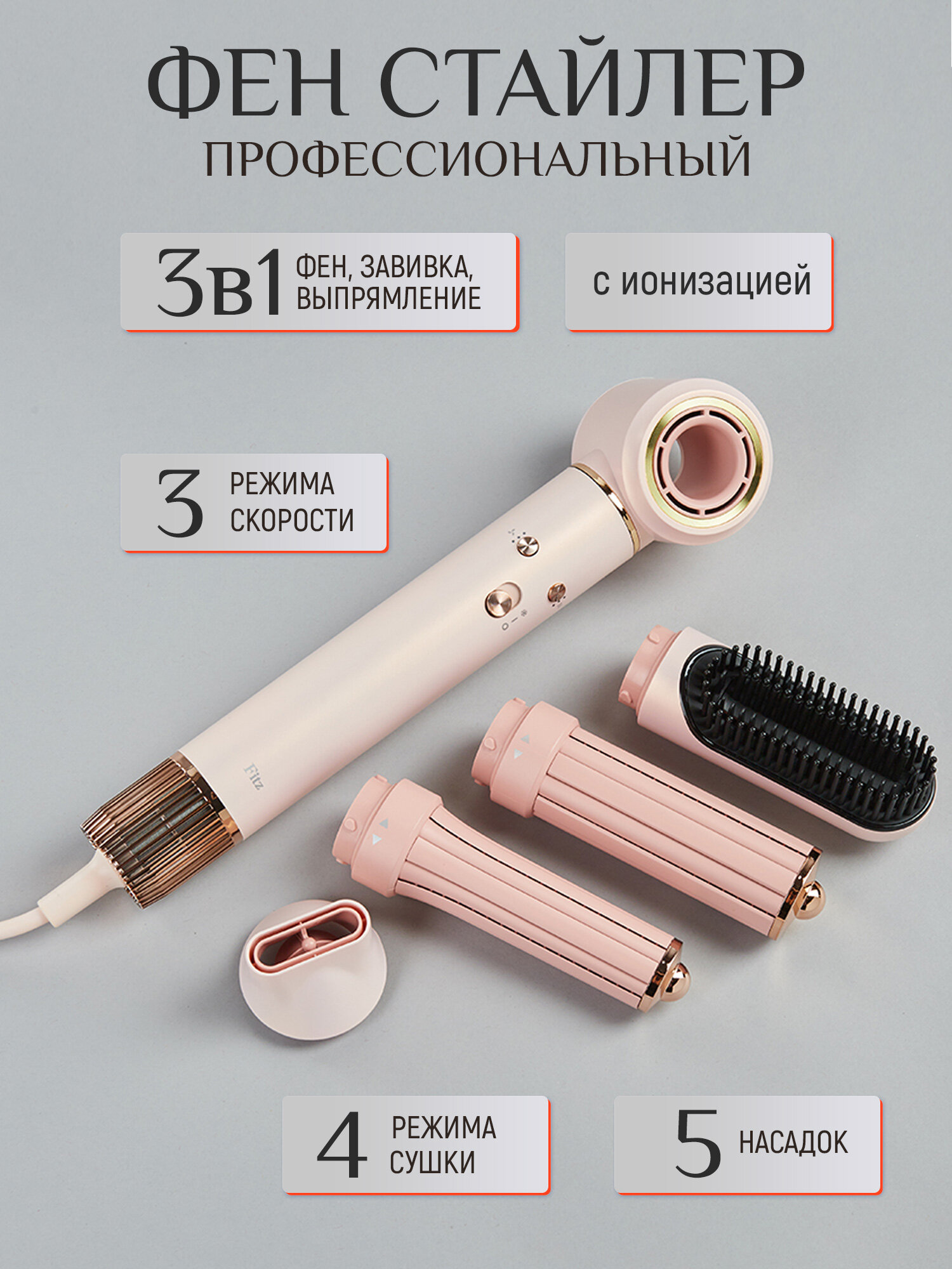 Фен-стайлер Fitz, 5 в 1, 3 скоростных режима, 4 температур, защита от перегрева