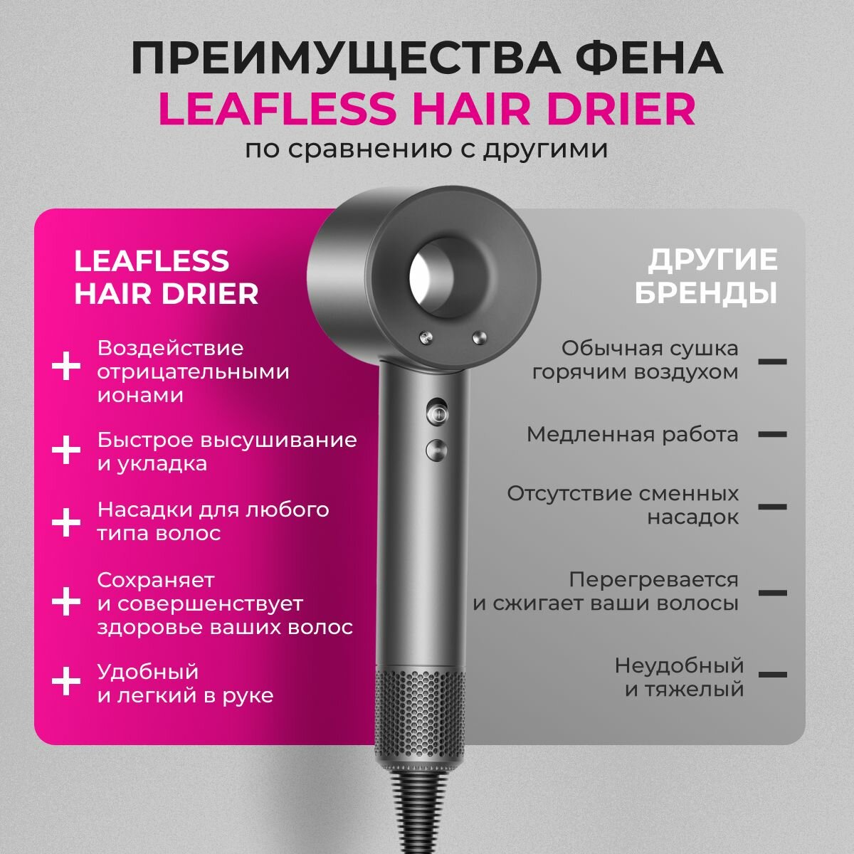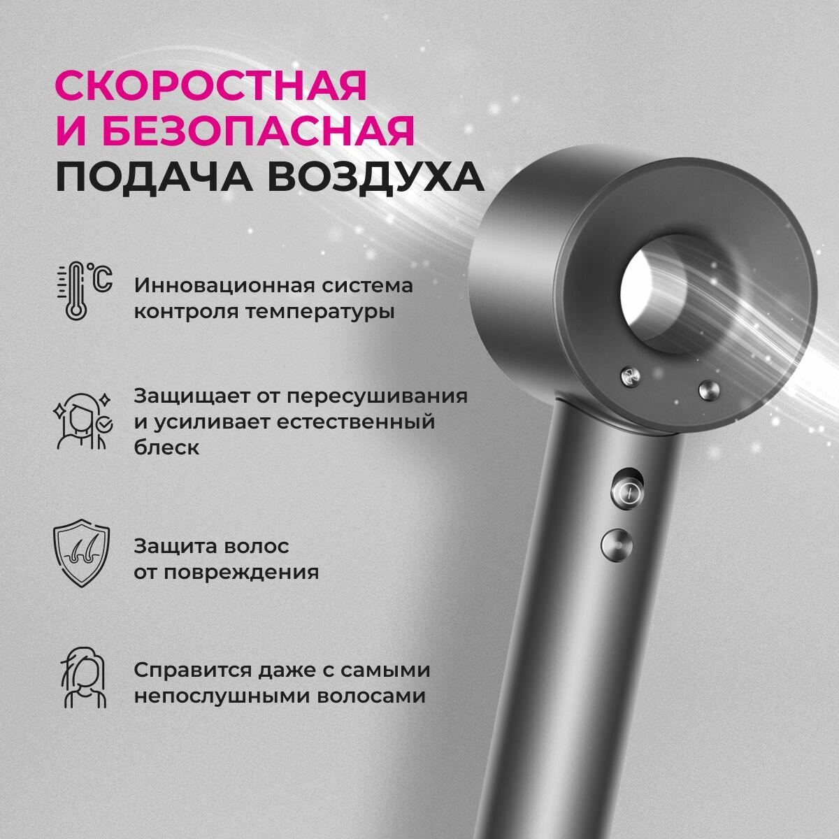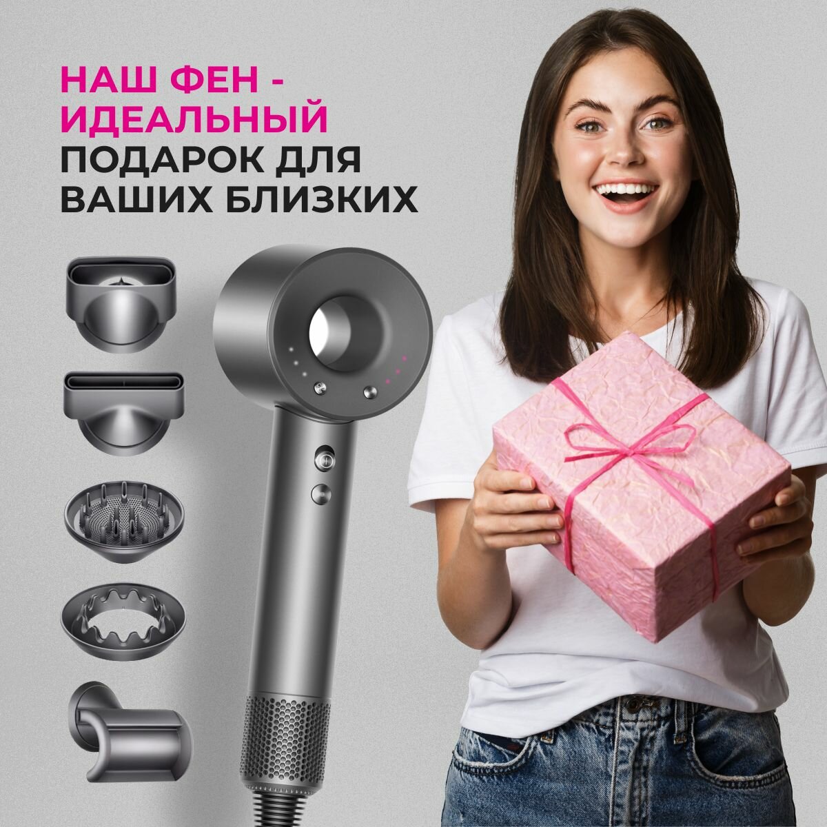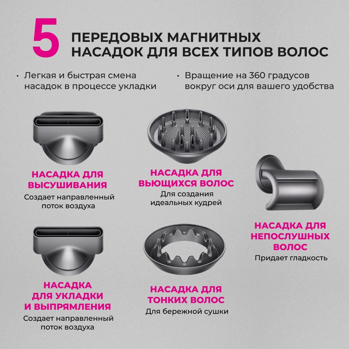 Фен для волос профессиональный маленький с магнитными насадками 5в1 интересное: