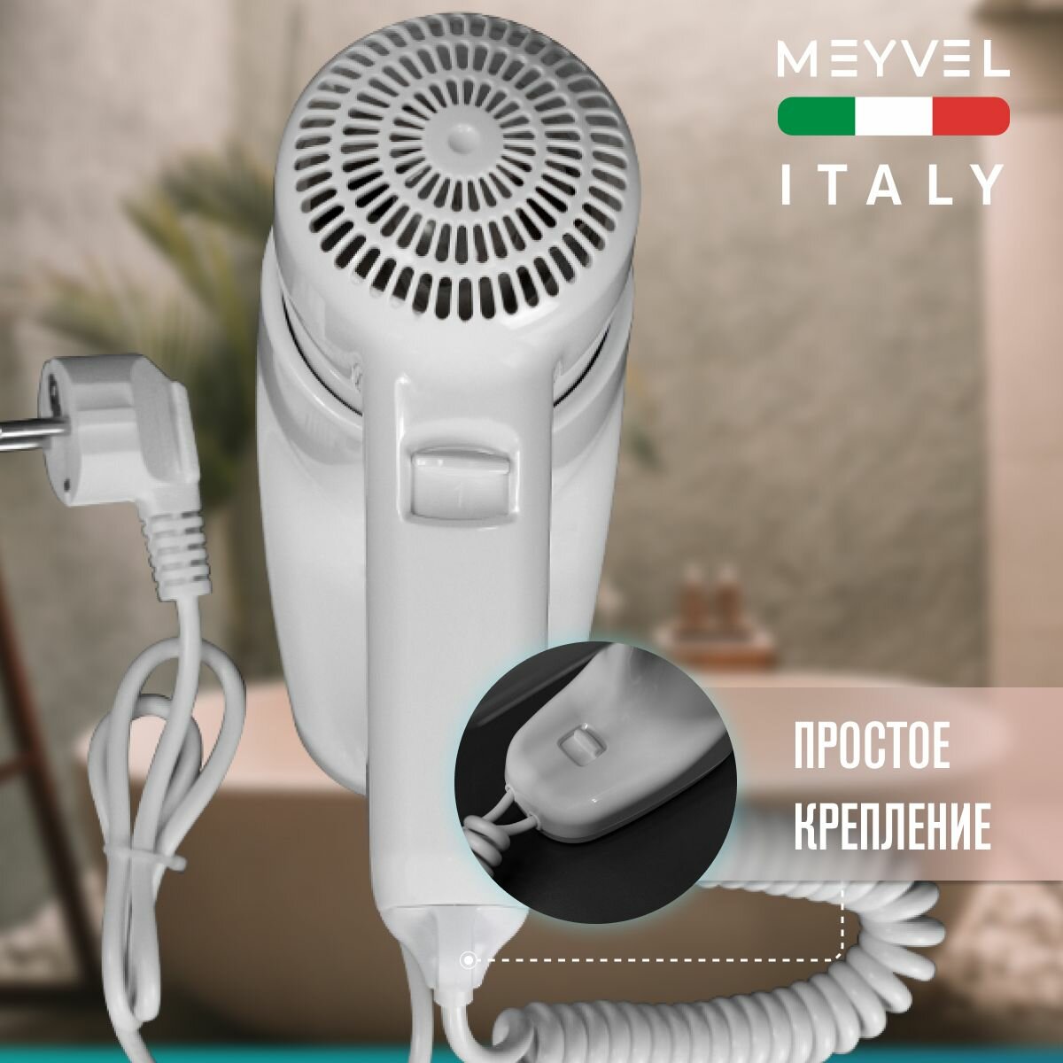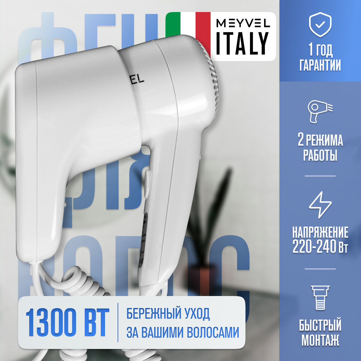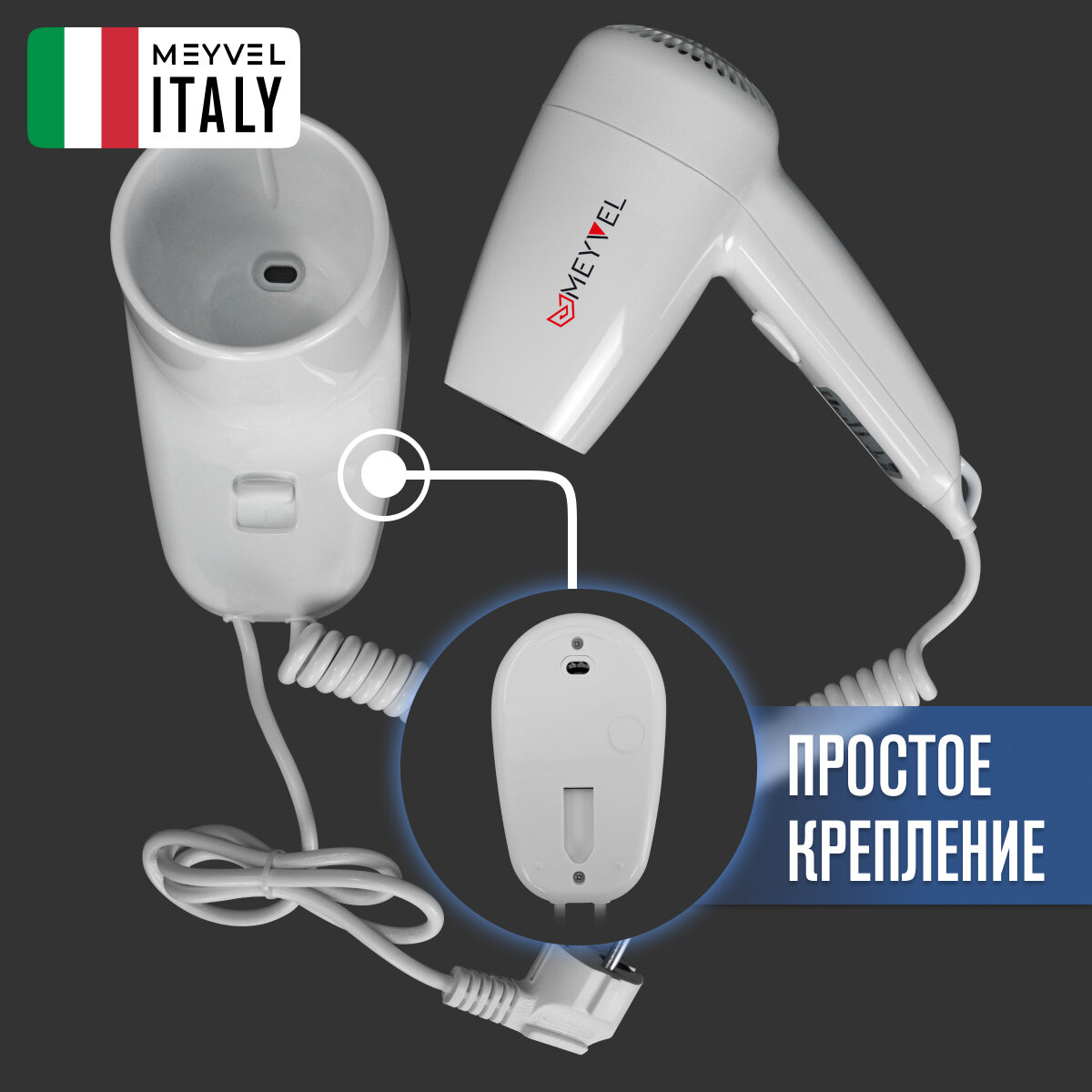 Настенный фен для волос Meyvel с держателем белый MF2-1300 (White) интересное:
