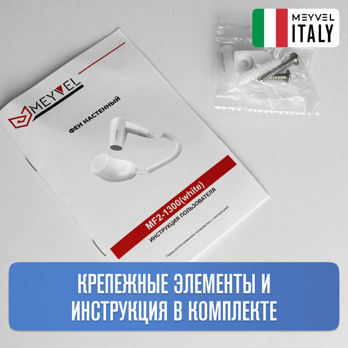 | Подробная комплектация | Настенный фен Meyvel MF2-1300 (White), Инструкция |