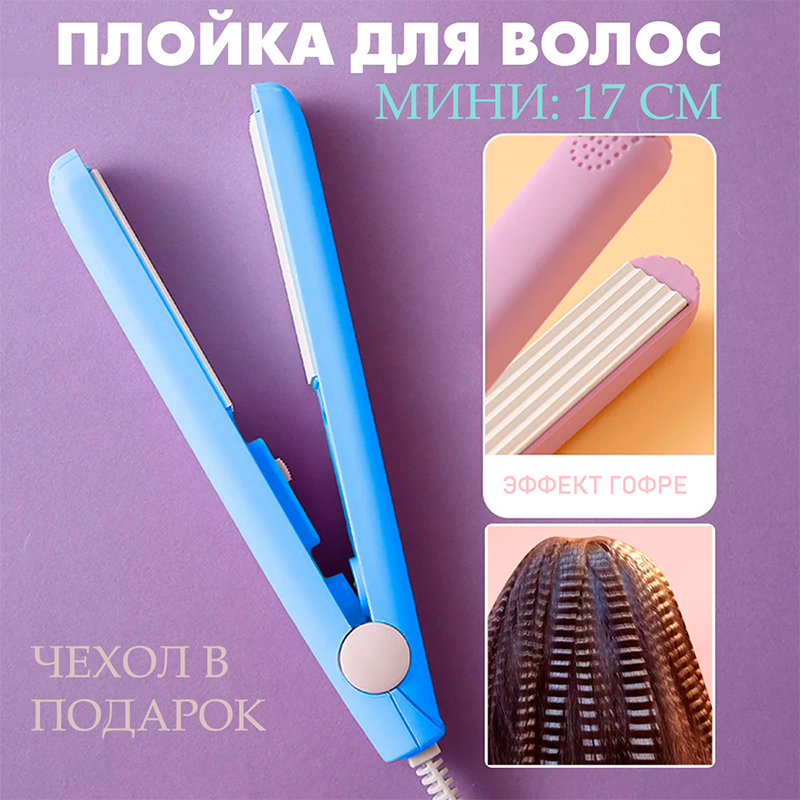 Плойка для завивки волос, голубой / Плойка гофре для волос S-3265 / Утюжок стайлер дорожный интересное: