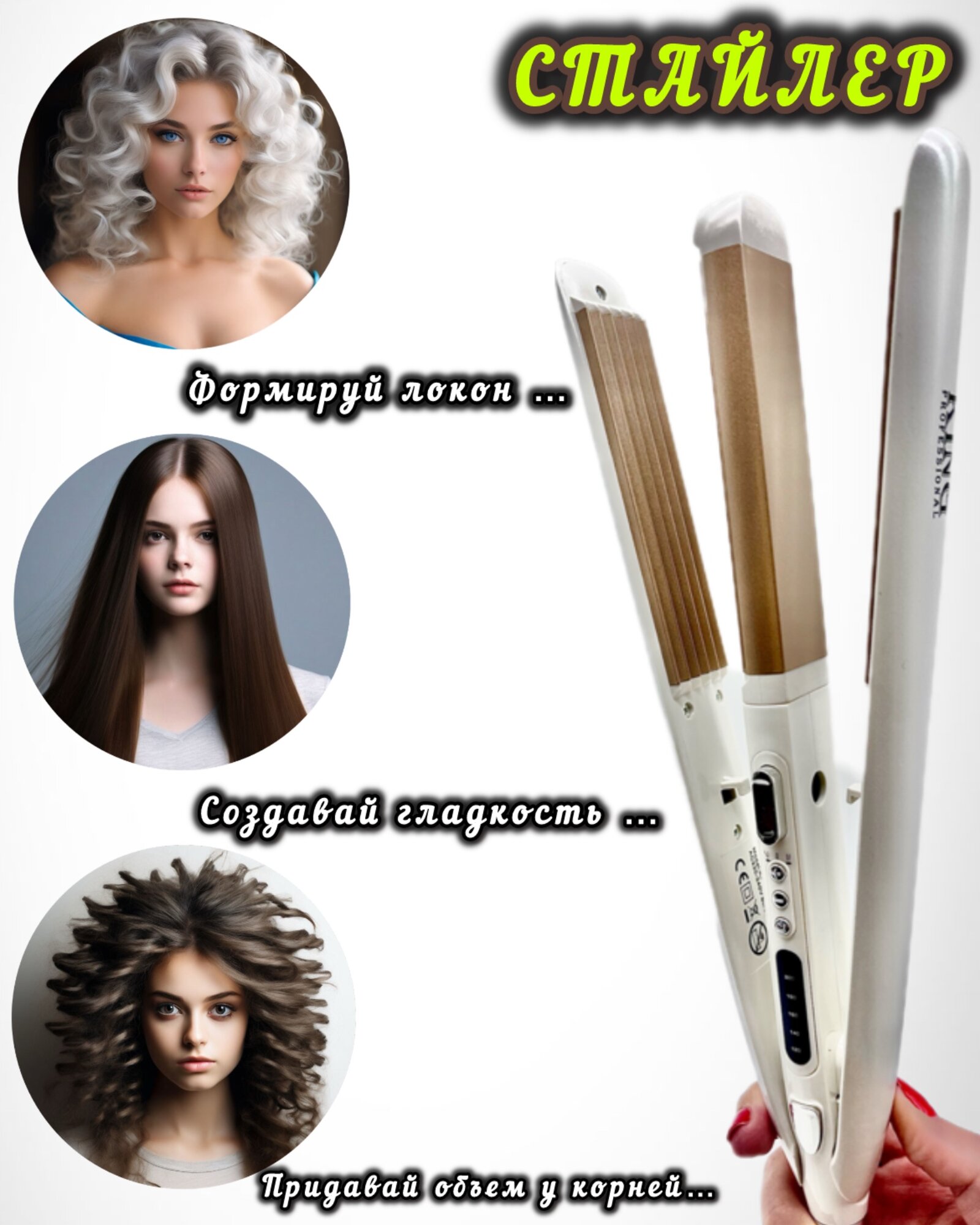 Купить Выпрямитель-стайлер-гофре для волос 3 в 1