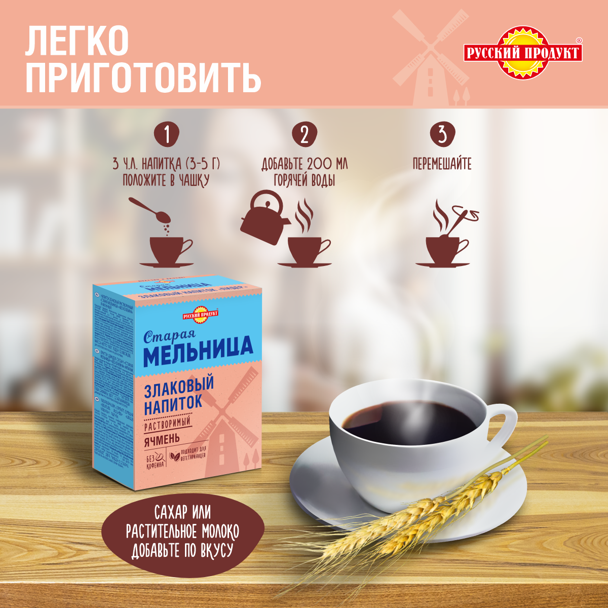 Напиток злаковый Без кофеина ячменный (Лидер) 100 гр x 4 шт, Русский Продукт интересное: