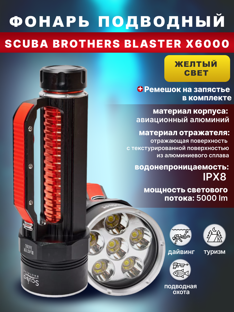 Фонарь подводный SCUBA BROTHERS BLASTER X6000, 5000 lm, желтый свет интересное: