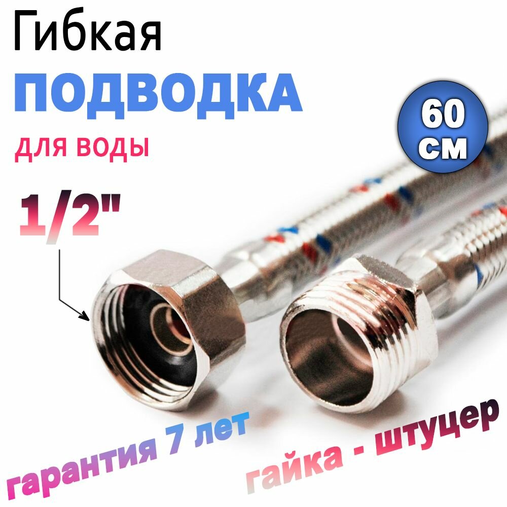 Подводка гибкая для воды 1/2", гайка-штуцер, 60 см