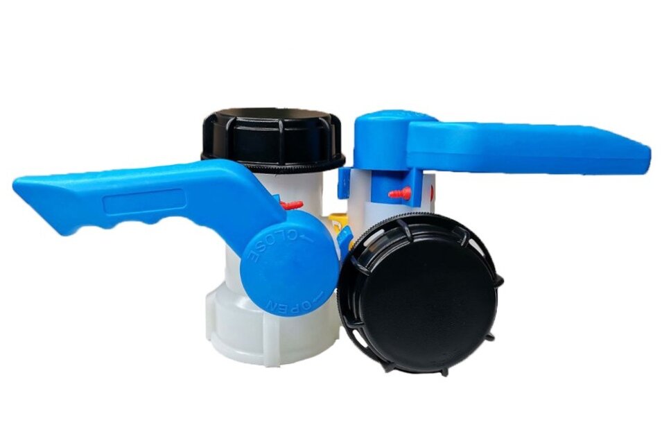 Купить Кран "Баттерфляй" для Еврокуба DN50, 60мм, вход S60x6 (2"), 60мм крупная резьба шаг 6мм, выход 60мм резьба шаг 6мм.