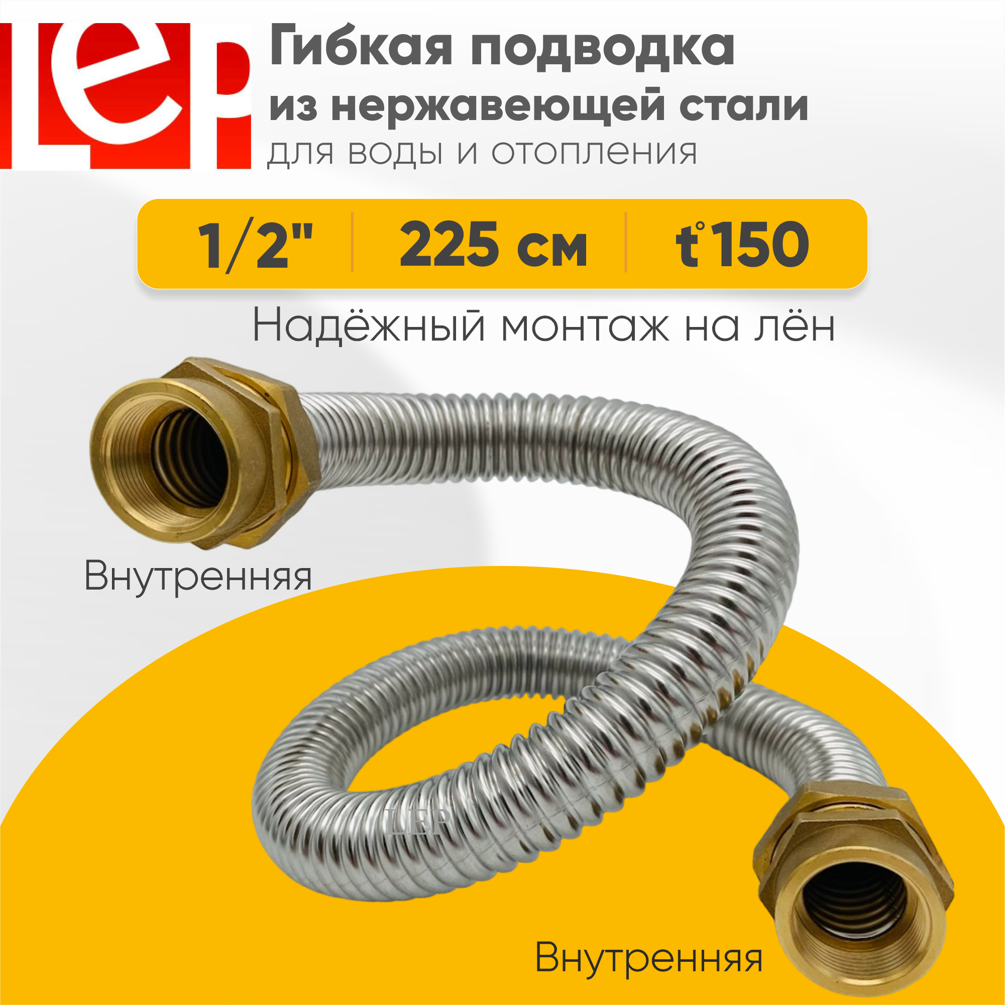 Купить Гибкая подводка LEP из нержавеющей стали 1/2" 225см внутренняя-внутренняя резьба