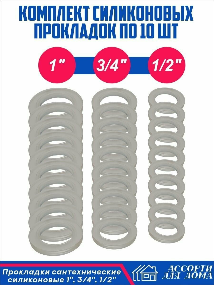 Сантехнические прокладки, силиконовые 1, 1/2 и 3/4 дюйма/ набор прокладок для крана, шланга, воды из силикона, всего в комплекте 30 штук интересное: