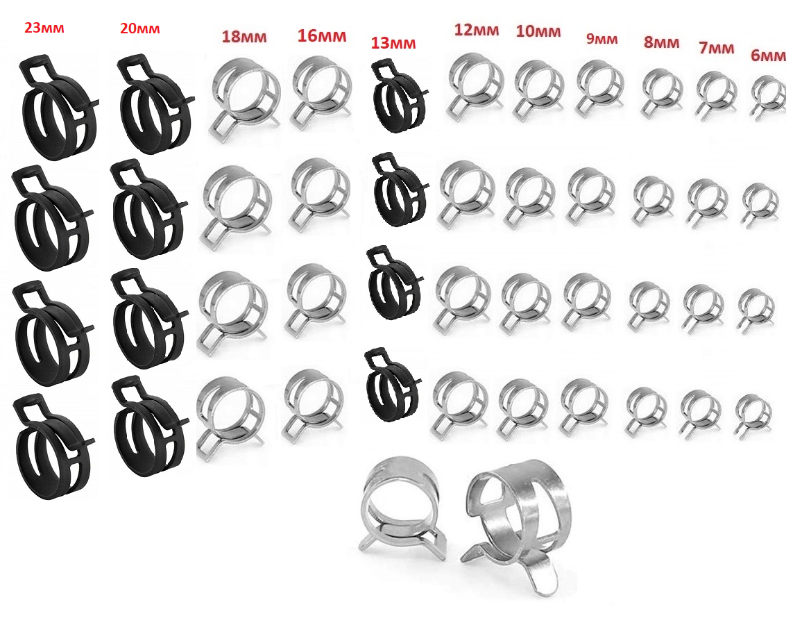24шт Пружинный авто хомут металлический для патрубков и шлангов 6 размеров 16/12/10/8/7/6мм по 4 штуки см. описание
