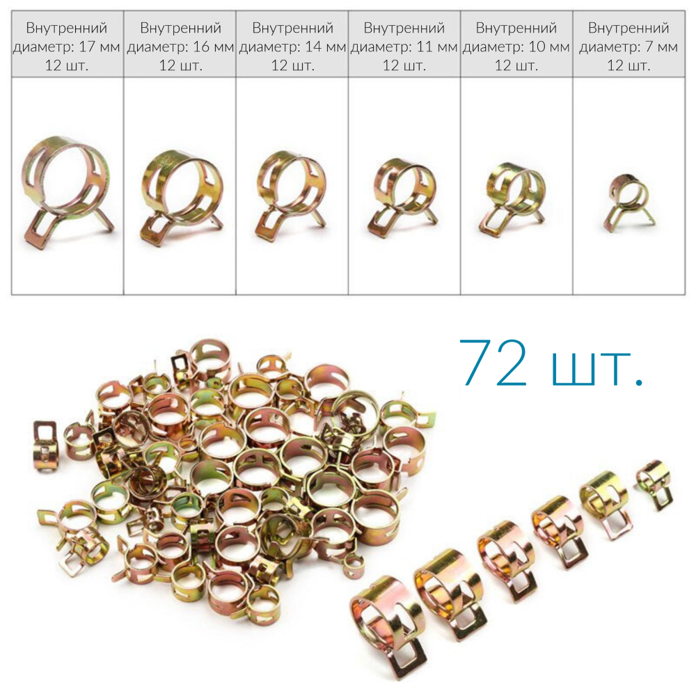 Купить Хомуты металлические пружинные, набор 72 шт.