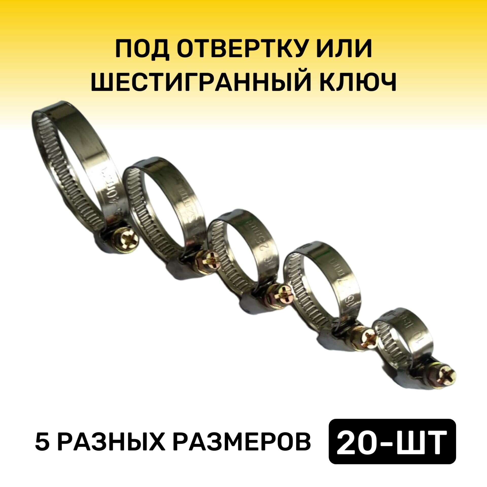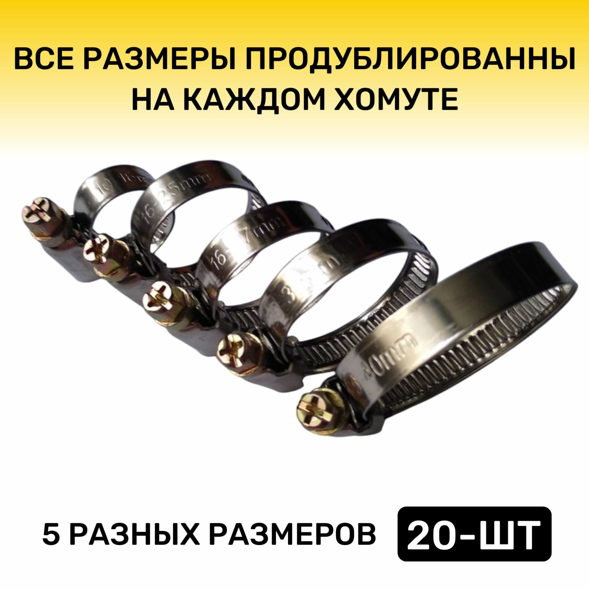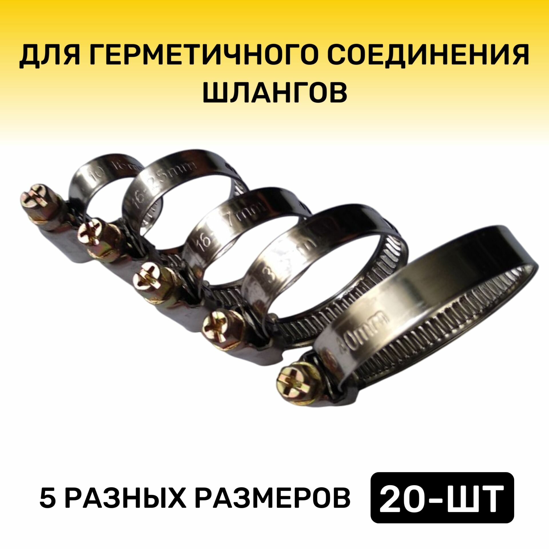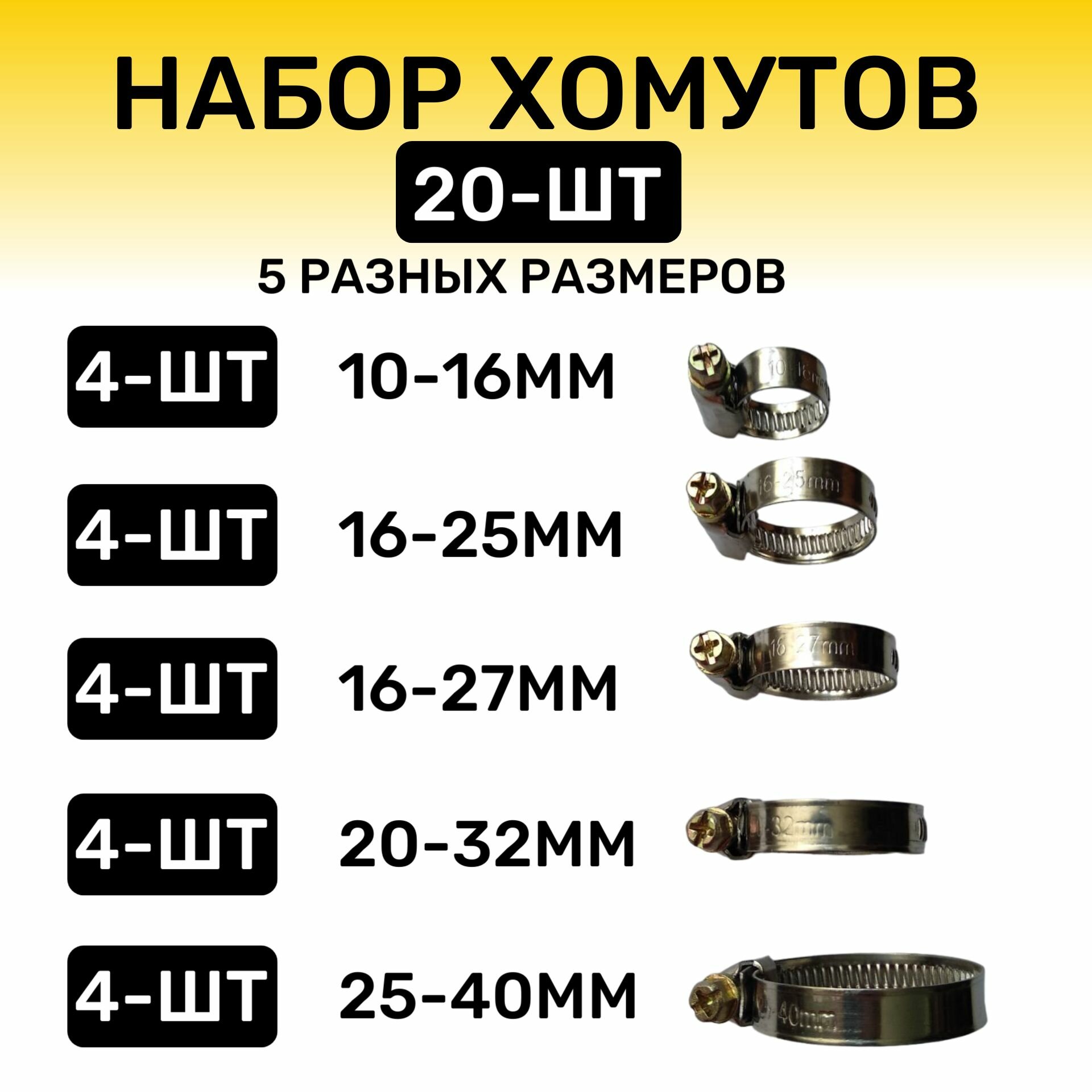 Хомут червячный металлический Набор 5 размеров, 10-16, 16-25, 16-27, 20-32, 25-40 мм, Обжимной, для шлангов и труб, интересное:
