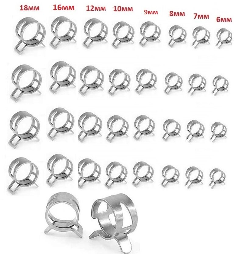 24шт Пружинный авто хомут металлический для патрубков и шлангов 6 размеров 16/12/10/8/7/6мм по 4 штуки см. описание