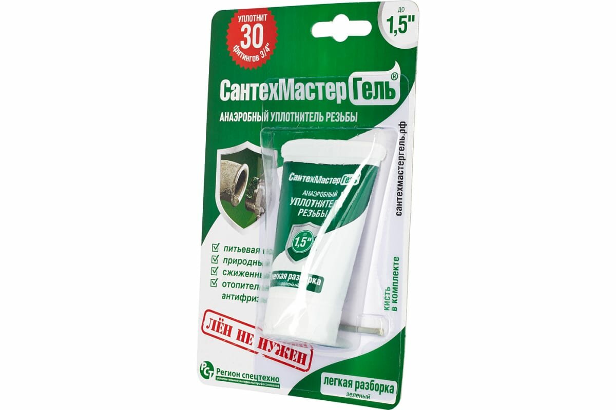 Анаэробный герметик для резьбовых соединений СантехМастер Гель зеленый 35 г с еврослотом