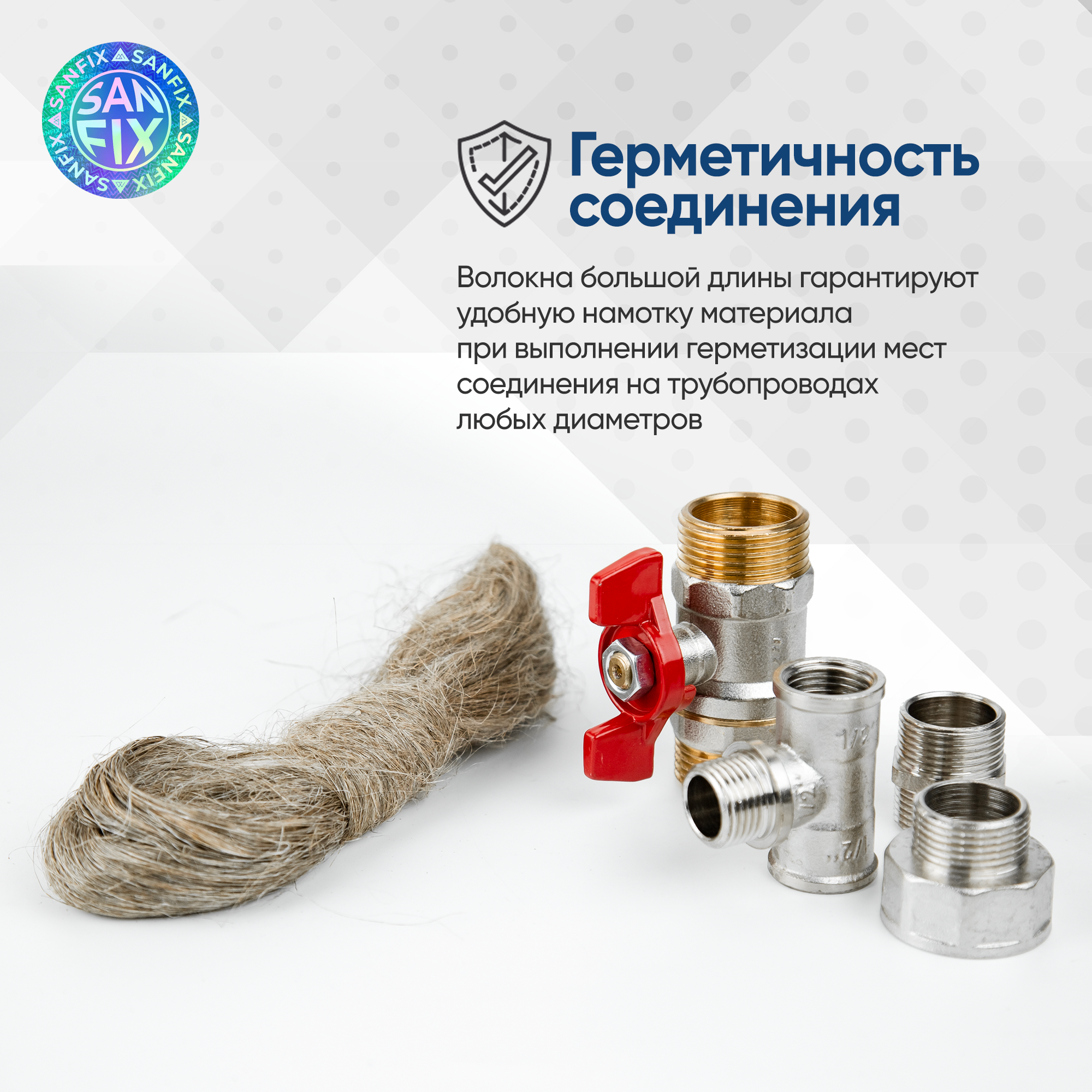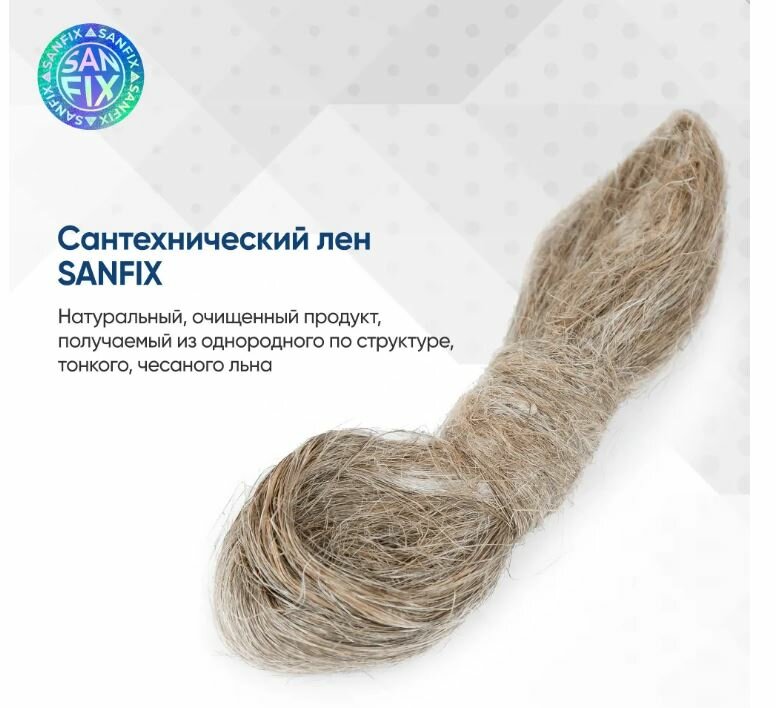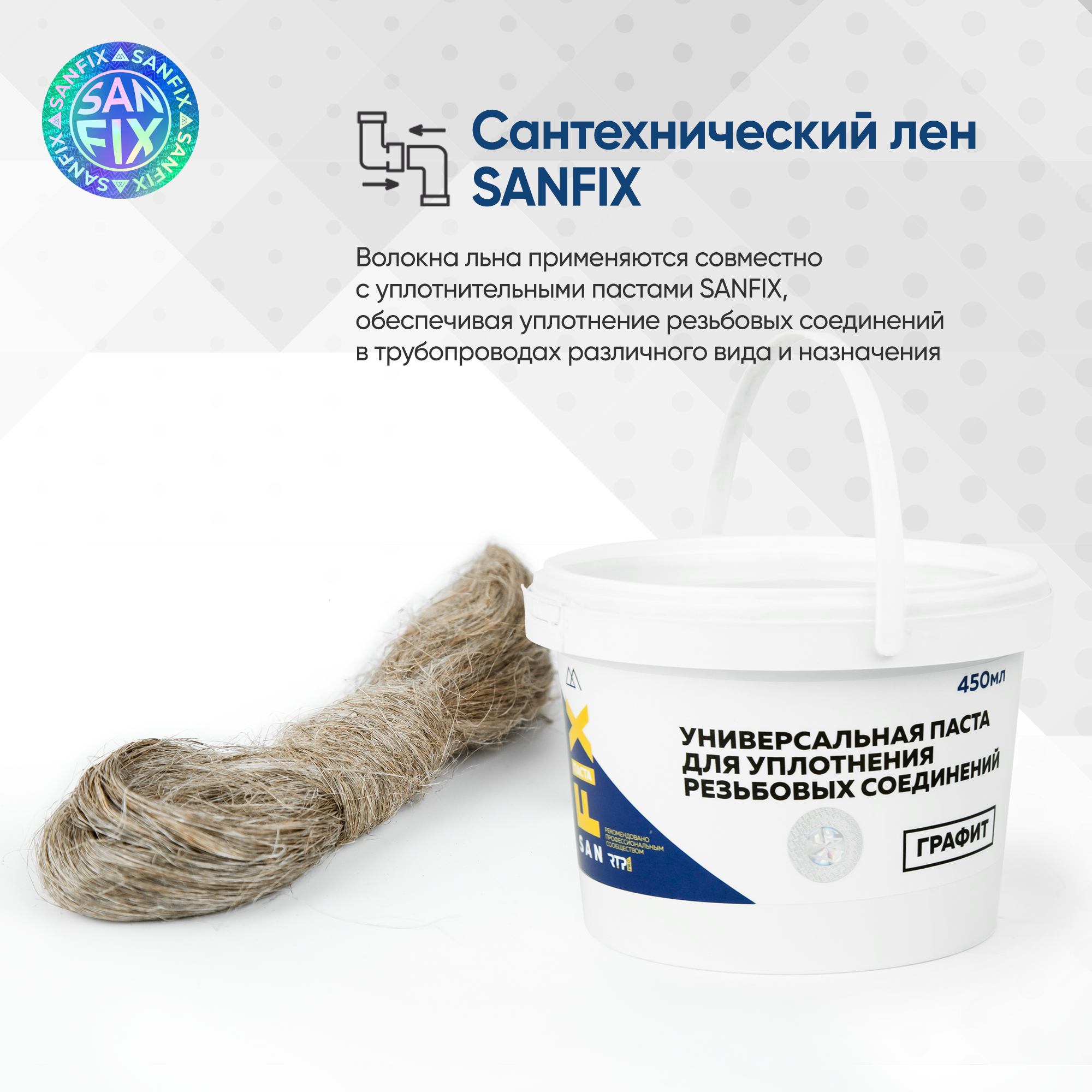 Лен сантехнический SANFIX чесаный 100 гр., универсальный для труб и фитингов водоснабжения и отопления