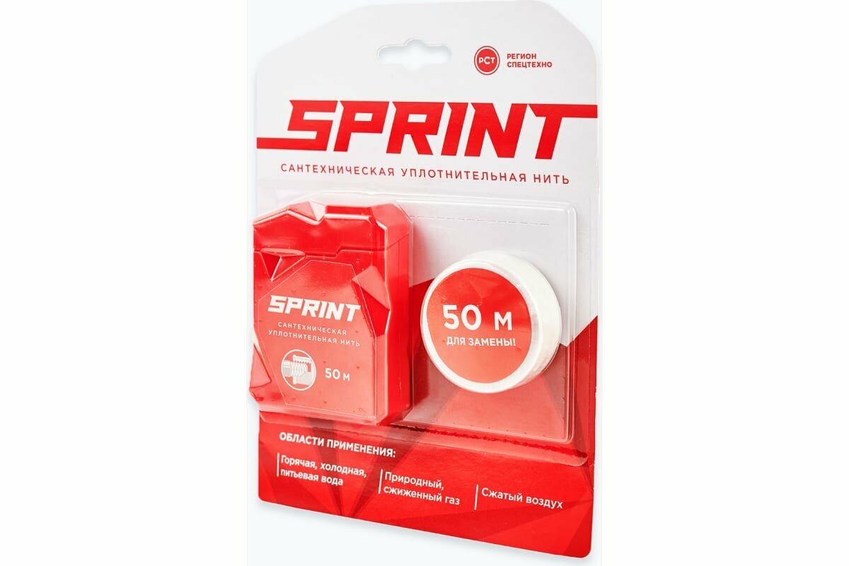 Сантехническая уплотнительная нить Sprint, 50 м бокс, 50 м катушка, блистер, Сантехмастер 61012 / 04061