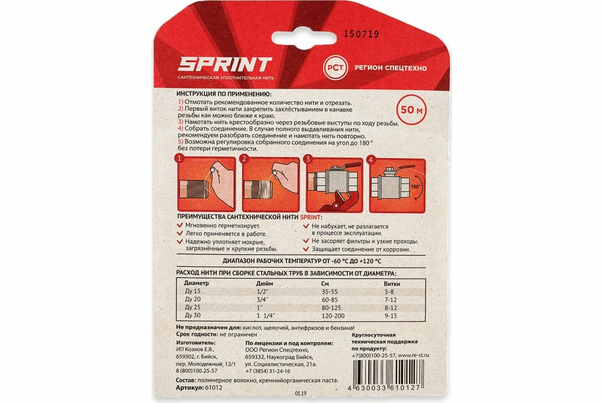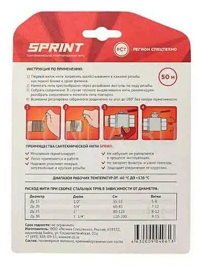 Уплотнительная сантехническая нить 'SPRINT' 50 метров интересное: