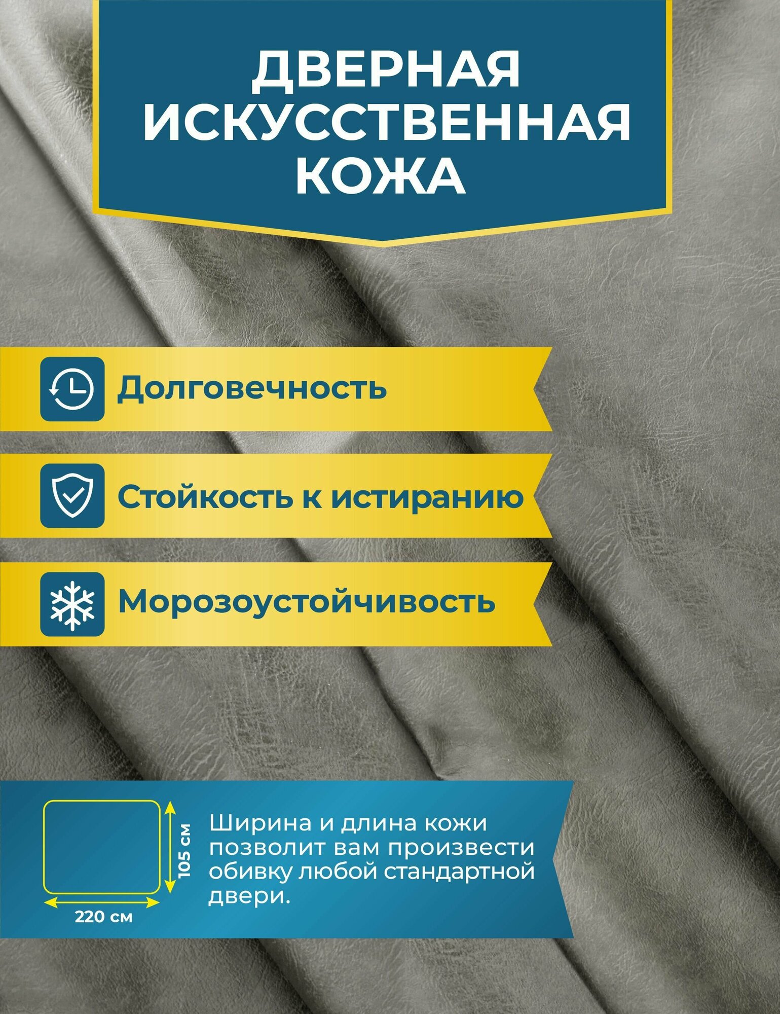 | Дополнительная информация | В набор уже входит все самое необходимое: Долговечная дверная искусственная кожа (возможно 7 различных цветов) 1.05 х2.20 м . Теплый пушистый синтепон. Поролоновый жгут уплотнитель 6 м. Мебельные декоративные гвозди 120 шт. Толстая полимерная струна 7,5 м . Инструкция по самостоятельные установки. |