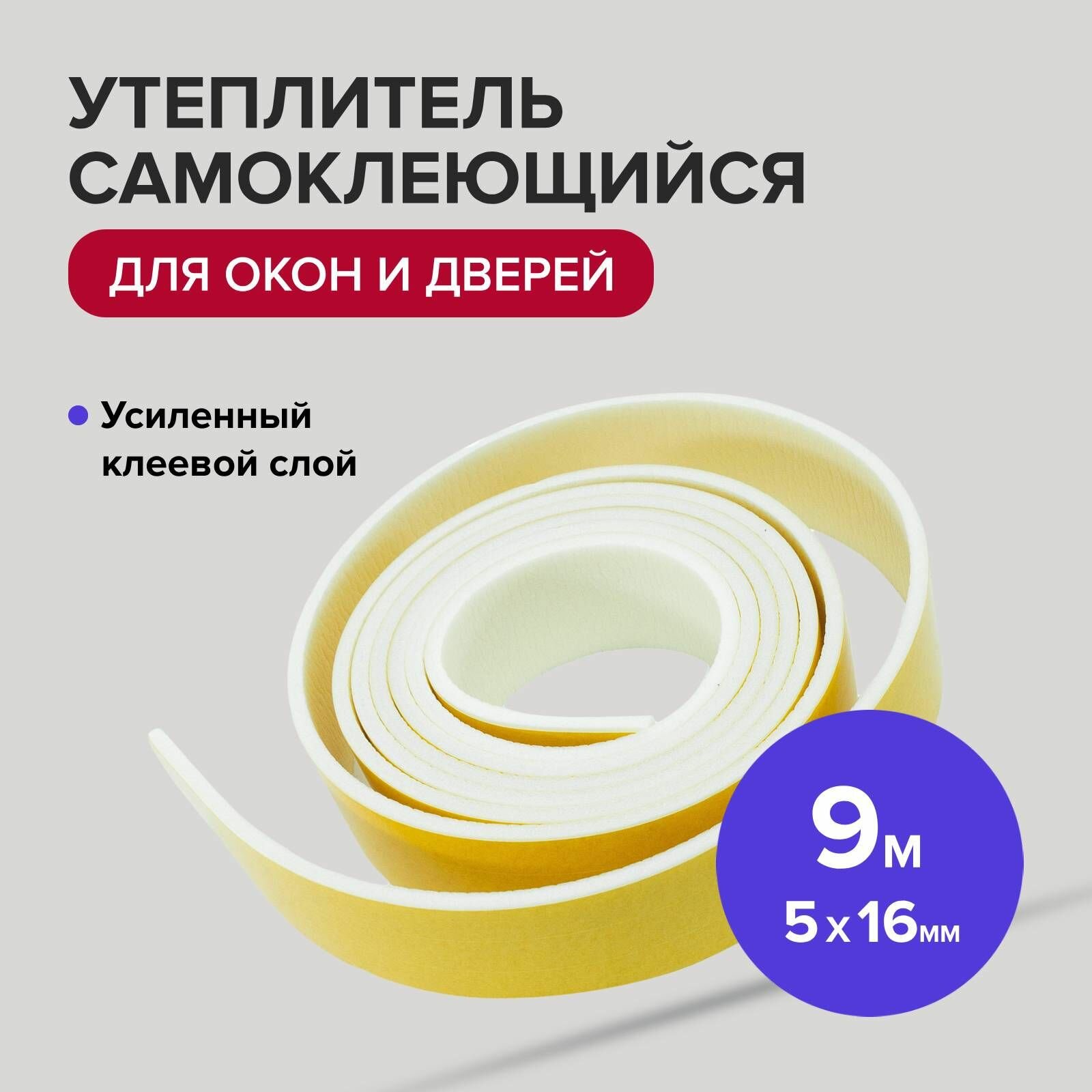 Уплотнитель для дверей и окон самоклеящийся усиленный 5 х 16 мм, 9 м Политех Инструмент интересное: