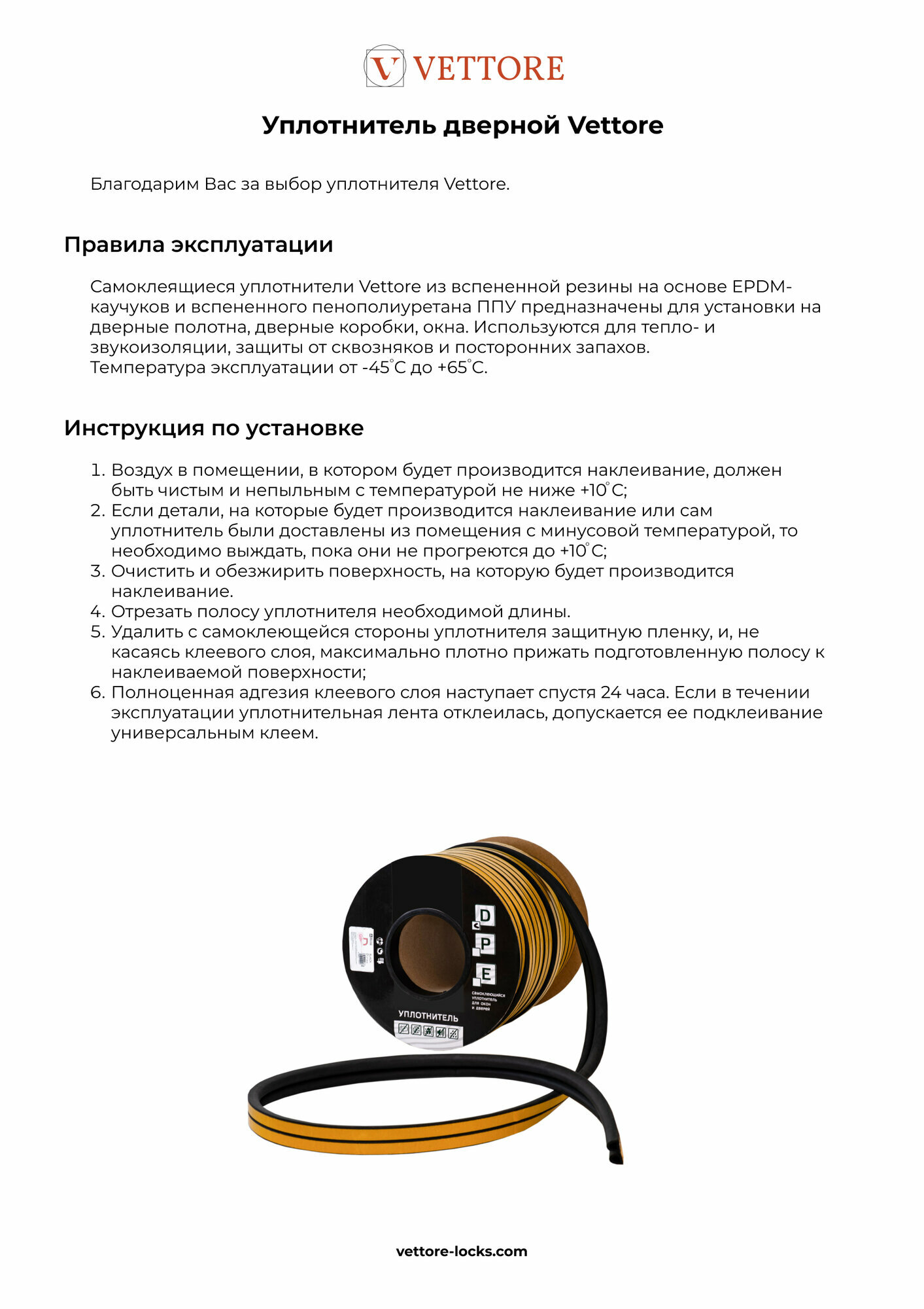 | Длина уплотнителя | 10 м |