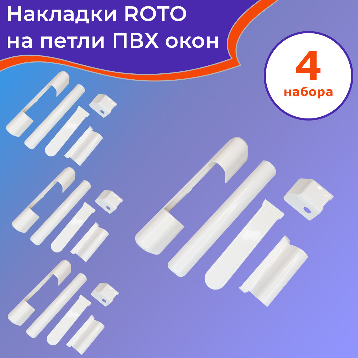 4 набора: Накладки на петли для ПВХ окон Рото NT, пластик, белые