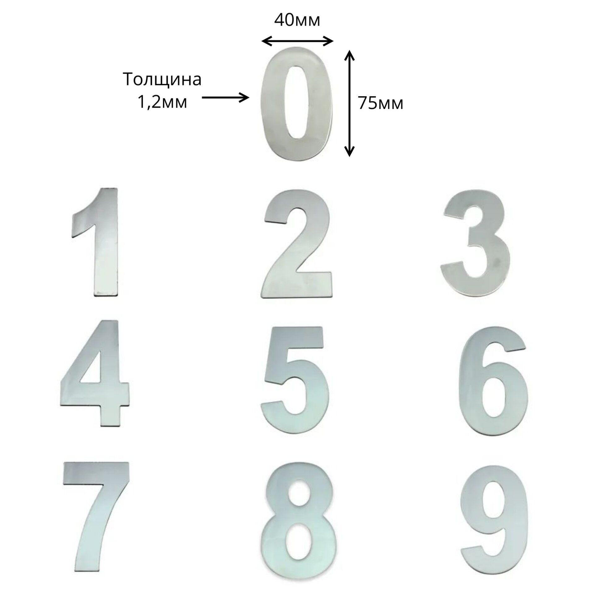 Цифры самоклеющиеся на дверь 75х40х1,2мм. (хром-серебро-светлое) интересное: