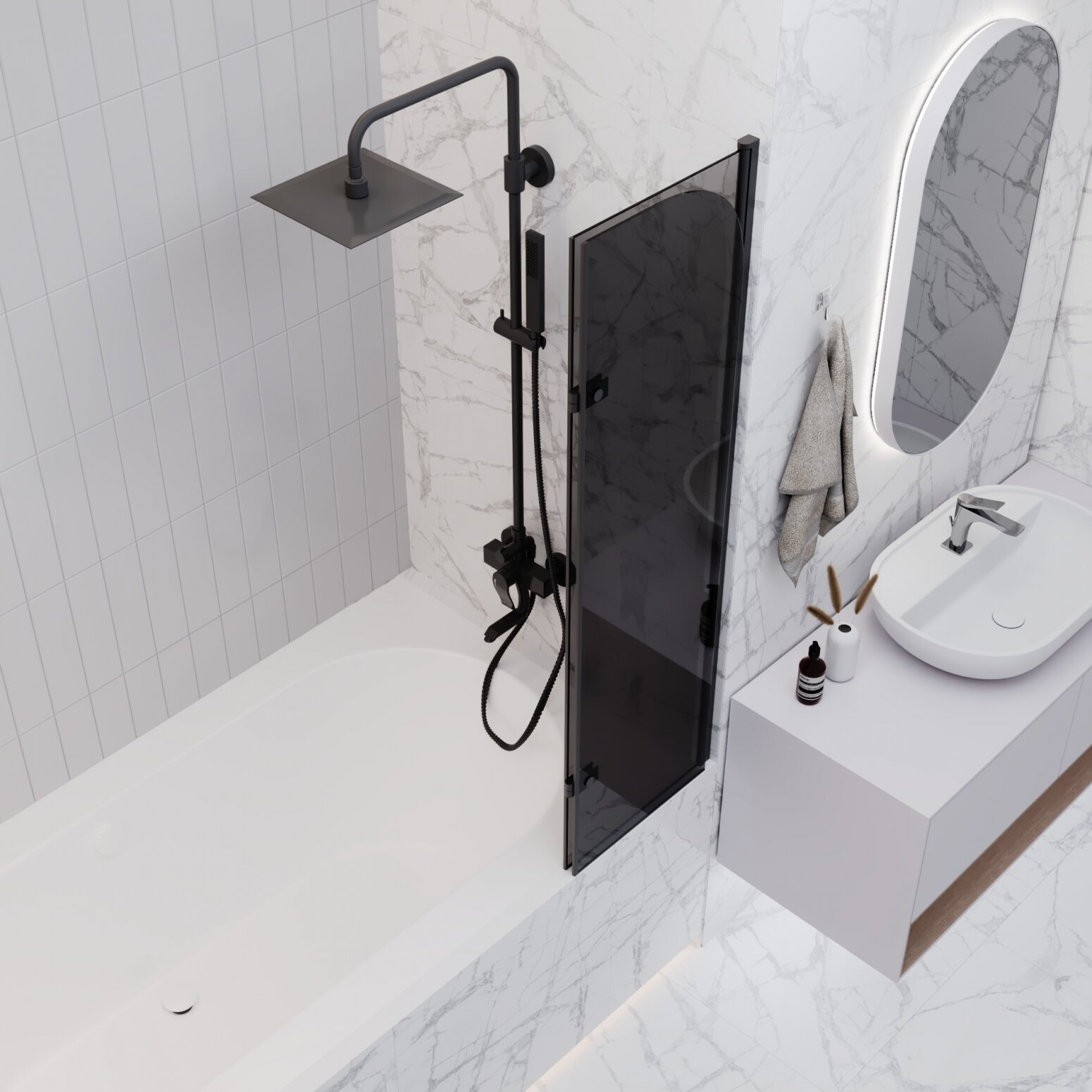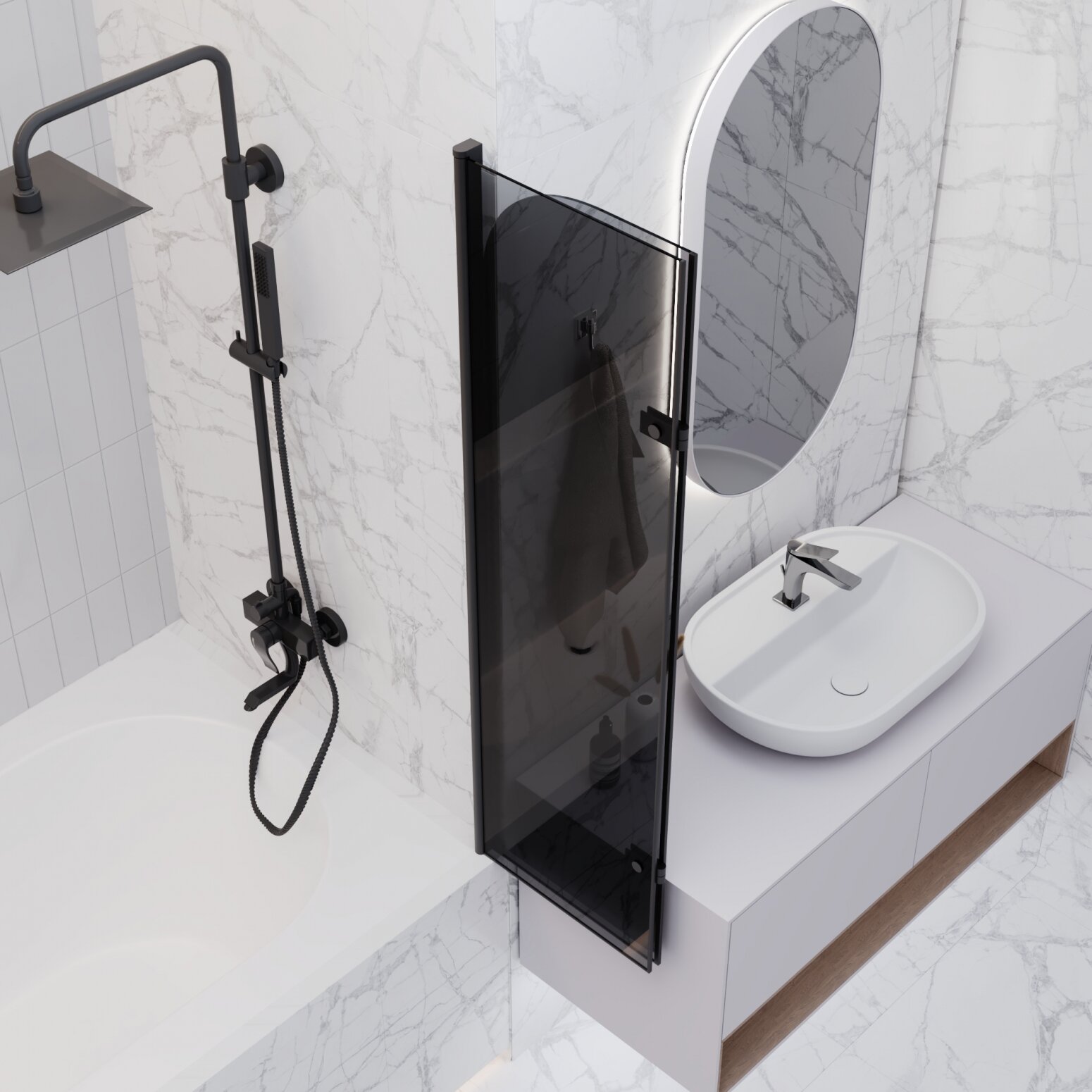 Душевая шторка на ванну Enio Binario EN7020509 80x140 профиль черный матовый, стекло тонированное, складная интересное:
