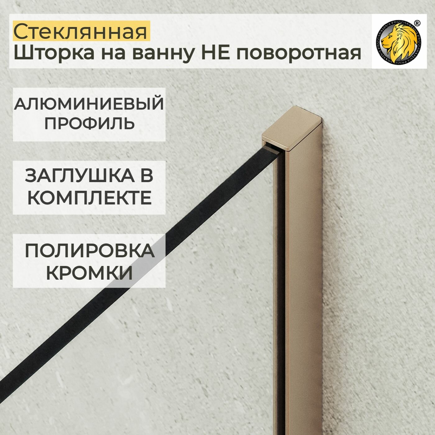 Купить Стеклянная душевая шторка для ванной 8 мм 1400/300 (УП) MaybahGlass, стекло прозрачное, профиль бронза