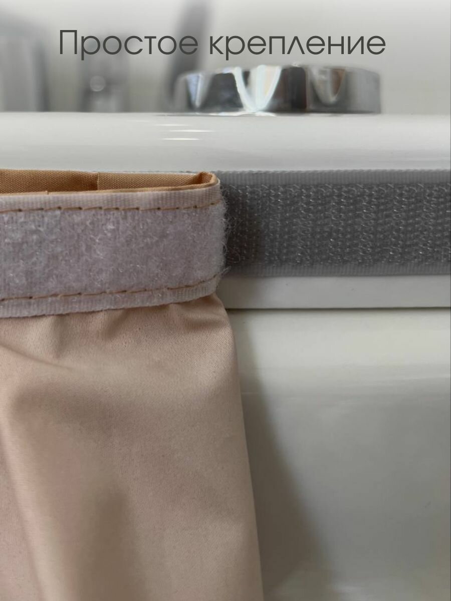 | Дополнительная информация | выполнен из водоотталкивающей ткани (полиэстер 100%), легко крепится под ванну на липкую ленту и отстегиватся при необходимости |