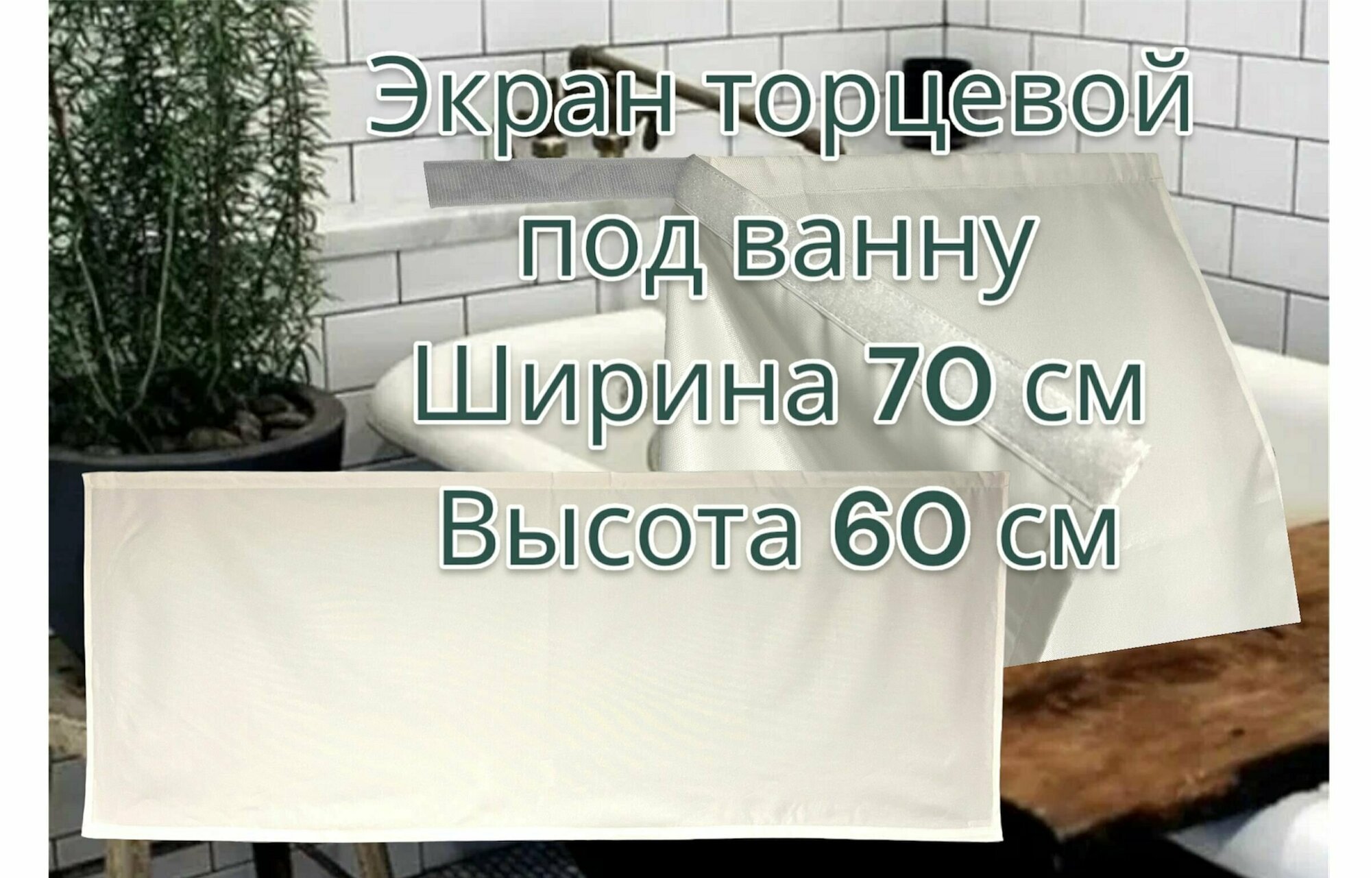Экран под ванну из водоотталкивающей ткани, бежевый, размер 70*60 см, крепление не требует монтажа