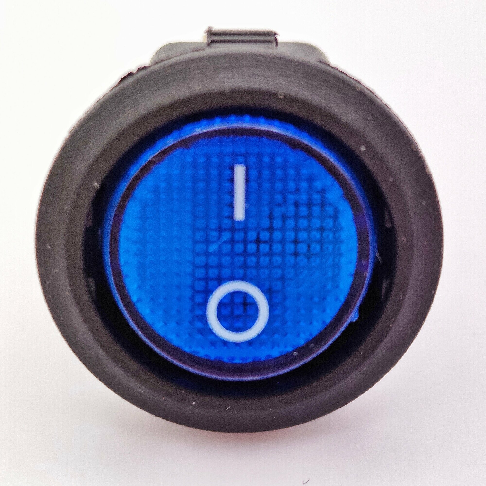 Выключатель клавишный КРУГЛЫЙ 12V 16А (3с) ON-OFF СИНИЙ с подсветкой + 3 клеммы