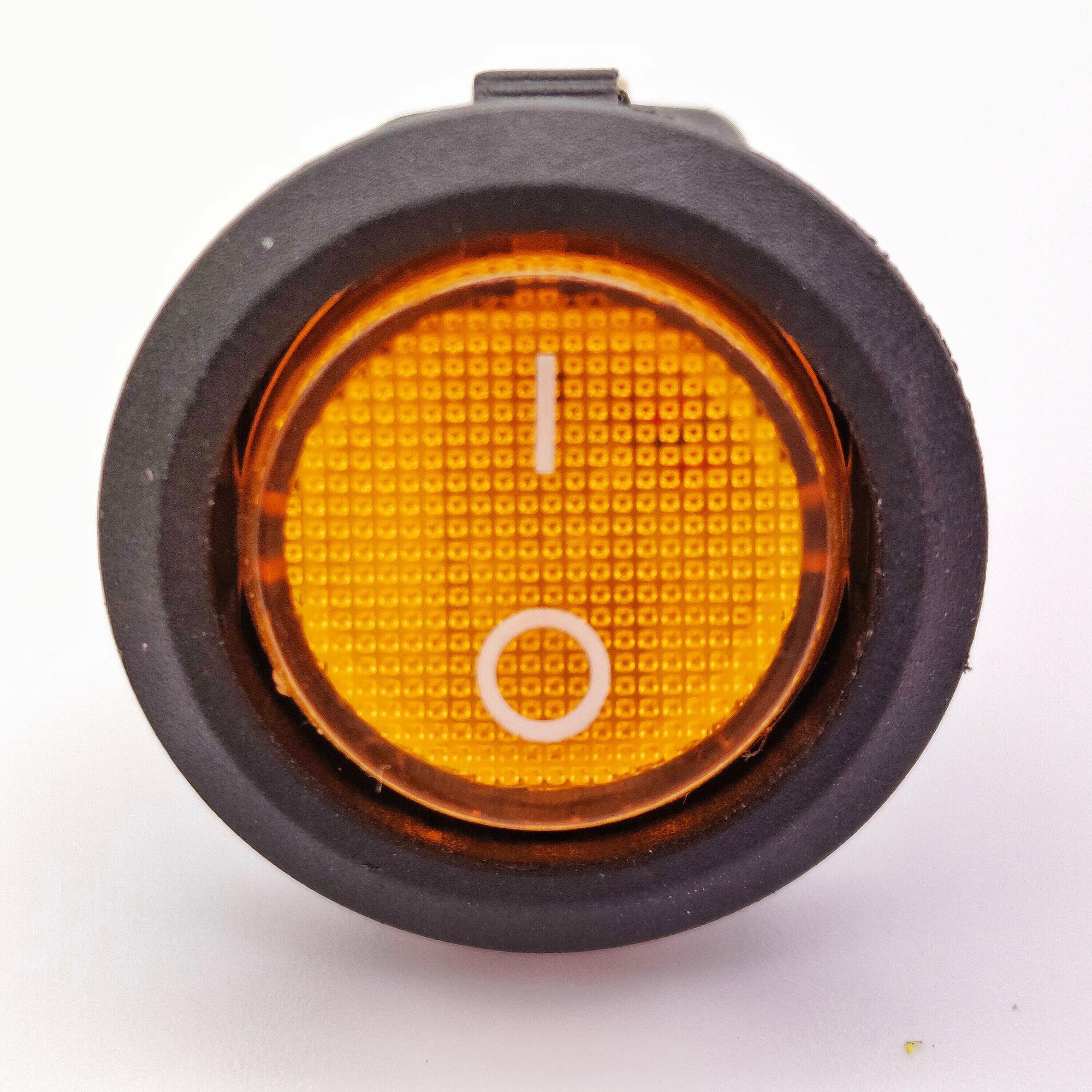 Выключатель клавишный КРУГЛЫЙ 12V 16А (3с) ON-OFF ЖЕЛТЫЙ с подсветкой + 3 клеммы